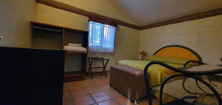 Acogedora cabaña para dos personas con la vista más espectacular de la zona. La cabaña cuenta con cocina equipada, comedor, recamara con cama matrimonial y un baño completo, además de una terraza desde donde podrás disfrutar de los atardeceres más bellos. También tenemos televisión y wifi.