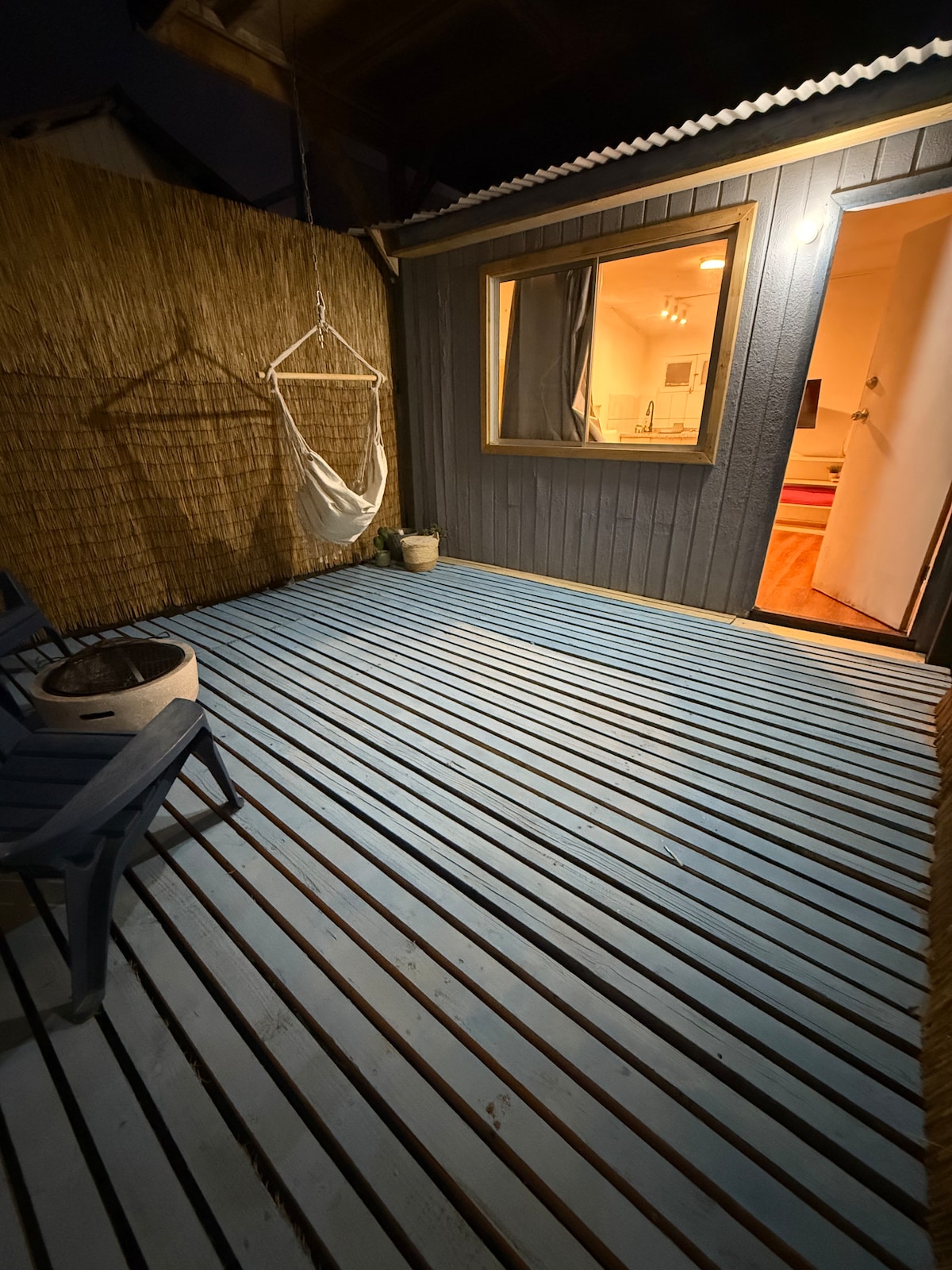 Ven y relájate en esta tiny house matrimonial moderna y acogedora a solo pasos de la playa. Con una excelente ubicación en un sector tranquilo y familiar. La cabaña tiene estacionamiento propio. Se ubica en un sitio espacioso junto a otras tres cabañas. Cuenta con terraza propia vista al mar, wifi, televisión con convertidor para acceder a aplicaciones vía streaming, parrilla a gas, lavadora, frigobar y está recién remodelada. Se aceptan mascotas! 🐾