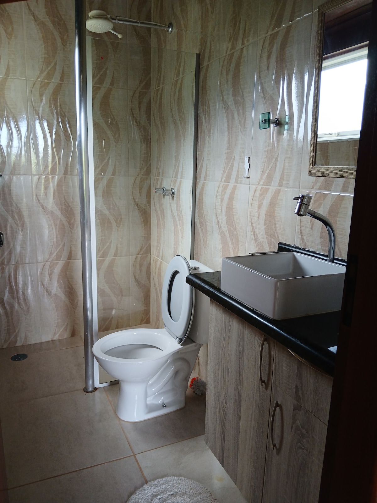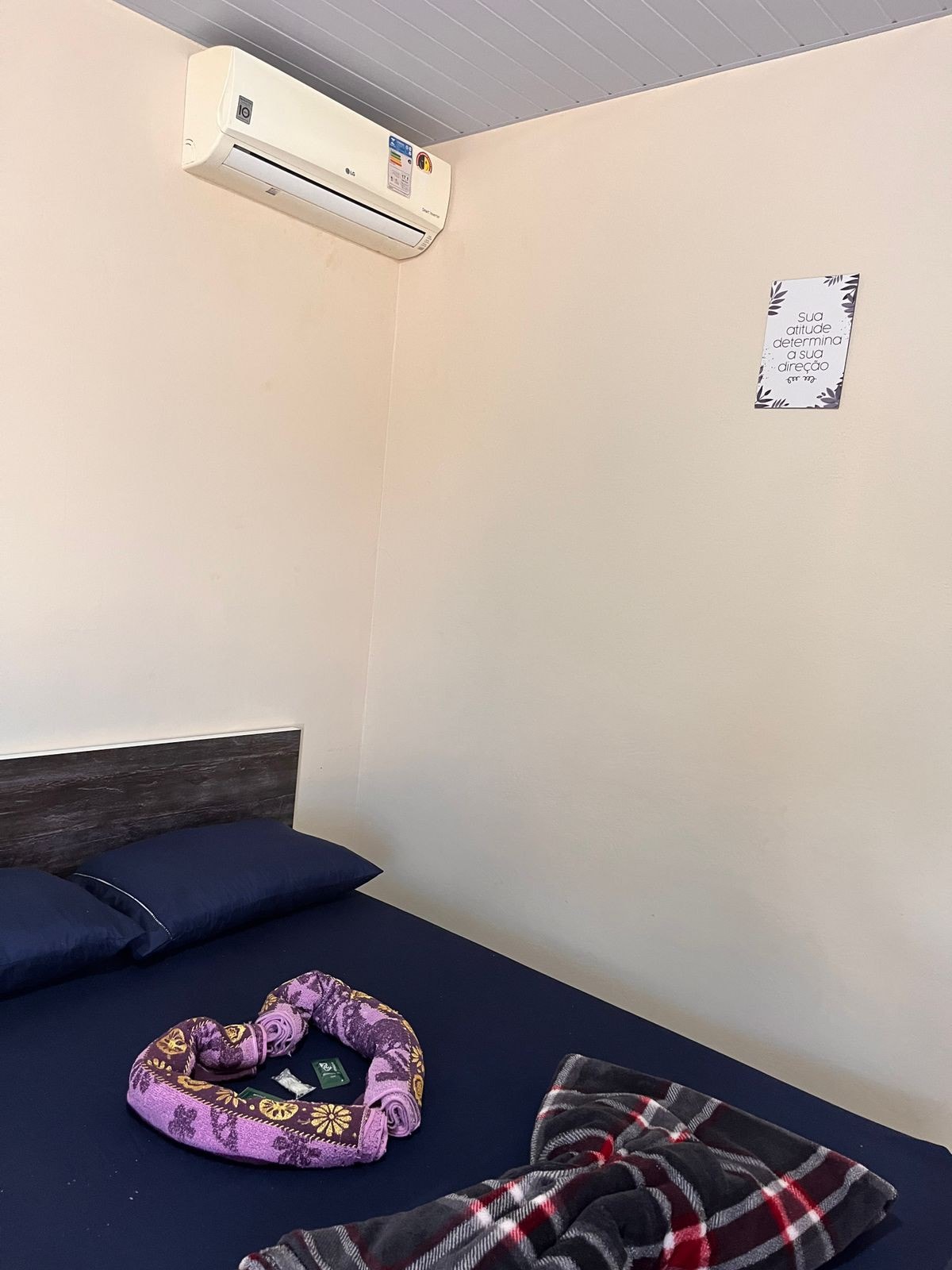 O quarto é equipado com uma confortável cama de casal e uma cama de solteiro, oferecendo espaço suficiente para relaxar após um dia repleto de aventuras. Além disso, você encontrará um ventilador para garantir noites tranquilas de sono. O quarto inclui roupas de cama limpas e toalhas de banho para sua conveniência.