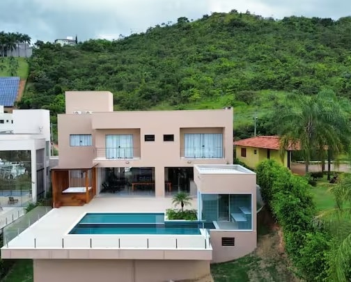 Casa de Altíssimo padrão em Escarpas do lago (Capitólio). Casa nova, muito bem mobiliada e decorada, possui wi-fi, TV 65 Sala e TV 55 suíte master, ar condicionado art cool lg em todos os quartos. A casa possuí sauna e jacuzzi (de 12h a 00h) e piscina. Ideal para famílias com bom gosto e que querem luxo. Não alugo para turma de solteiros. Ofereço roupas de cama e toalhas trussardi ( valor pago a parte caso o cliente tenha interesse).