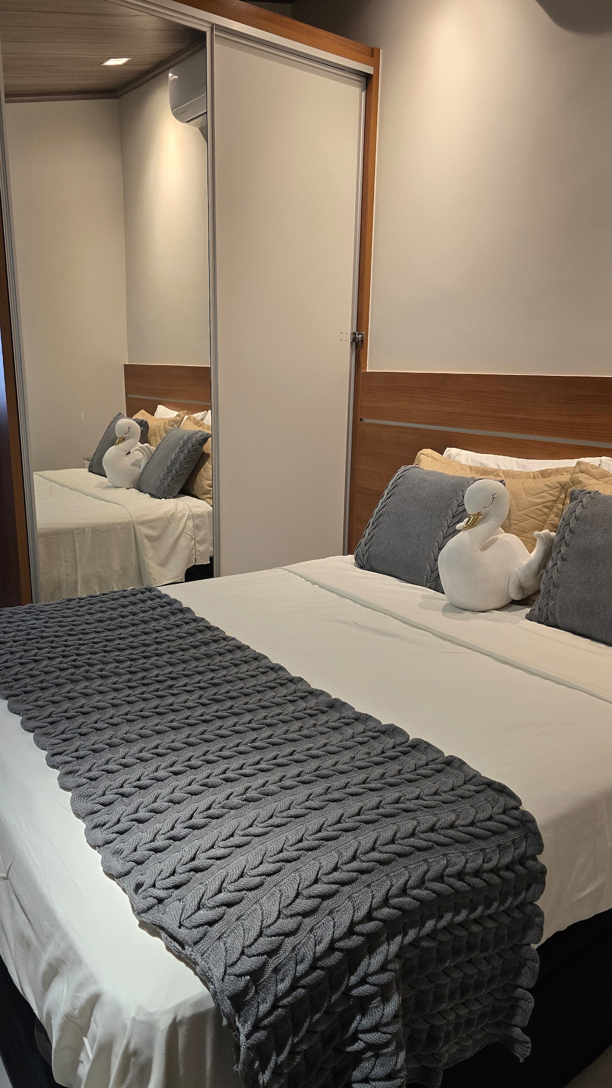 Lugar espaçoso e tranquilo. Excelente apartamento TÉRREO com garagem. Apesar do bairro ser extremamente seguro a casa proporciona toda segurança, cerca elétrica, muros altos e sistema de câmeras. PETS APENAS DE PEQUENO PORTE. Garagem coberta e fechada, para 1 carro. Local centralizado em Brasília perto do Aeroporto e rodoviária. Lavanderia PRIVATIVA. Possui roupa de cama e toalhas, ar condicionado, máquina de lavar, microondas, air fryer, fogão, utensilhos de cozinha, filtro