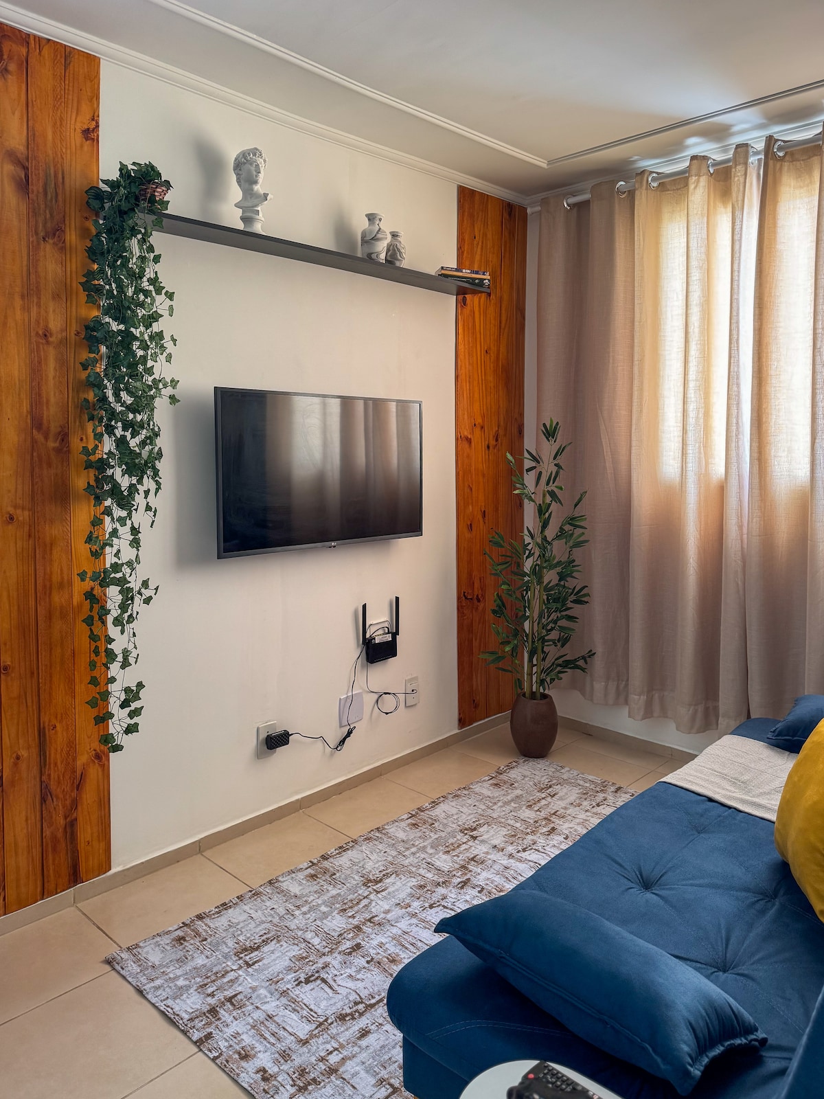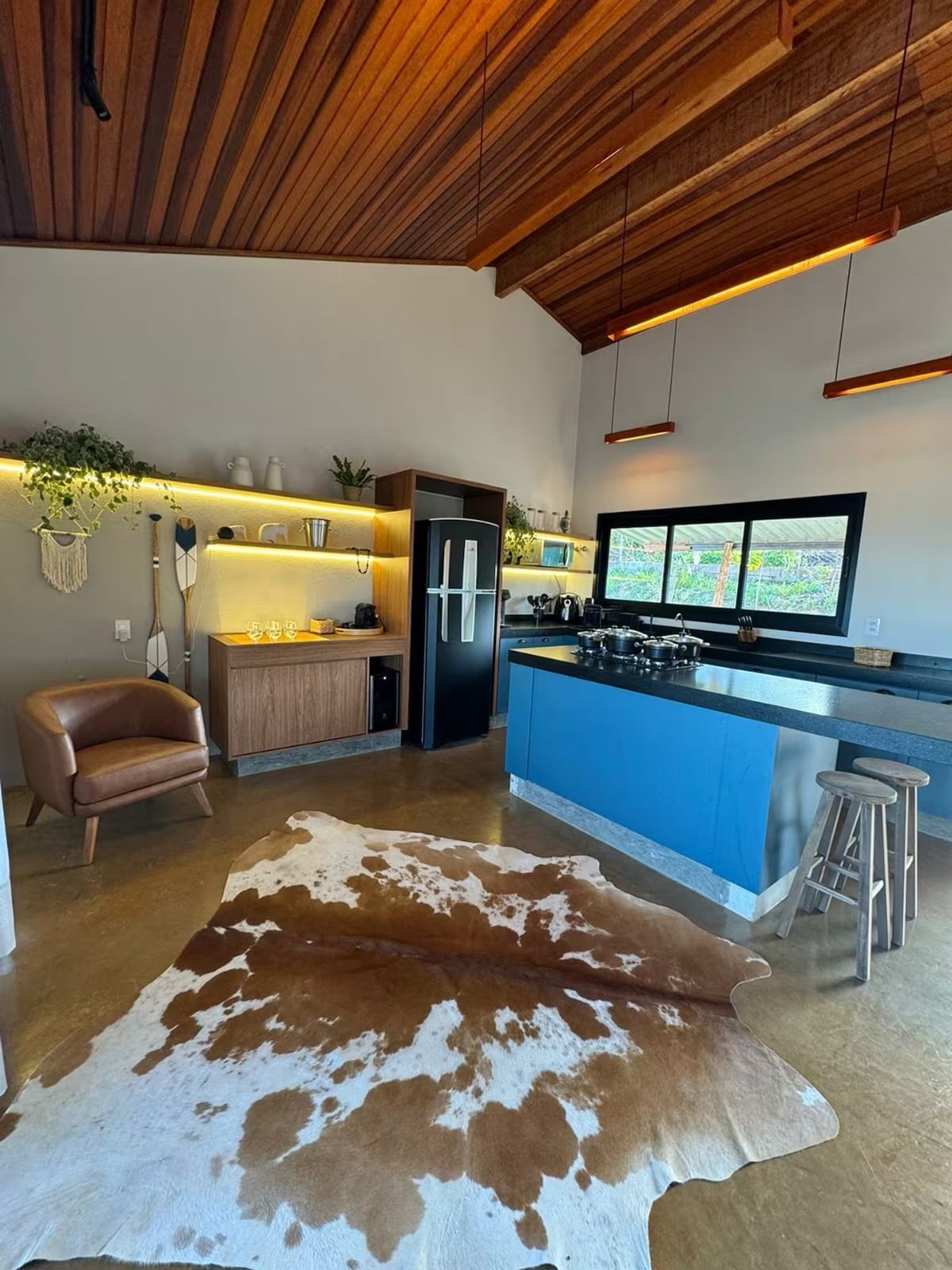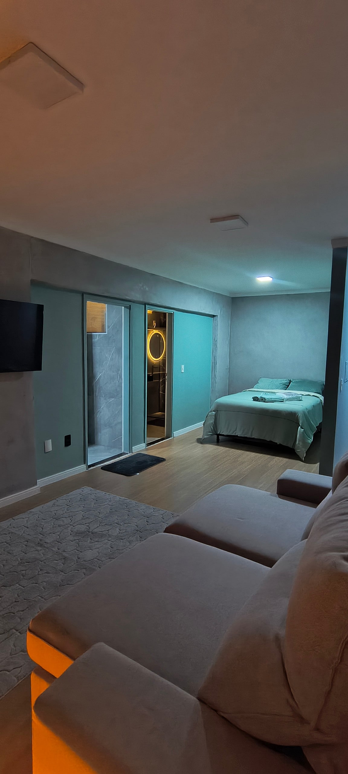 Preparado com carinho uma sala c/delicioso sofá retrátil de 4 lugares c/uma varanda gourmet, cozinha e lavanderia completa. uma suíte com TV e cama super king, no quarto uma cama de casal com ventiladores. Ambientes decorados e com armários planejados. Ar condicionado, Espaço Home office para trabalhar com todo o conforto. Para sua comodidade será cobrada uma taxa de limpeza para não se preocupar em limpar e trazer roupa de cama/banho. Taxa adicional para utilização da churrasqueira de R$ 40,00