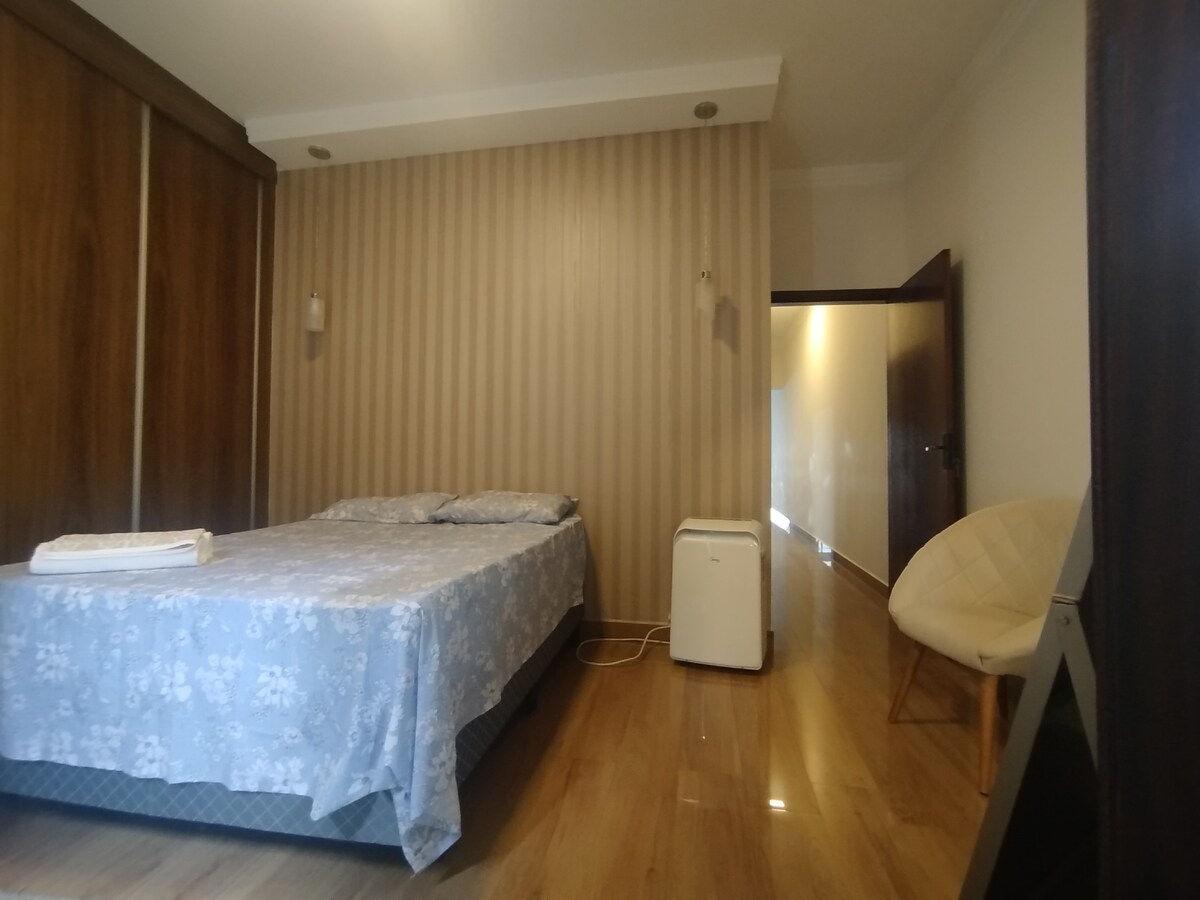 Relaxe com toda a família nesta acomodação tranquila. Bem arejada, com pista de caminhada ao ar livre frente a casa. NÃO aceitamos visitas, se isso ocorrer, deverá ser informado ao anfitrião e será cobrado uma taxa extra. Câmeras na garagem e na área externa da casa, inclusive na varanda 2 quartos com cama casal ( 1 é suíte) Total 3 banheiros
