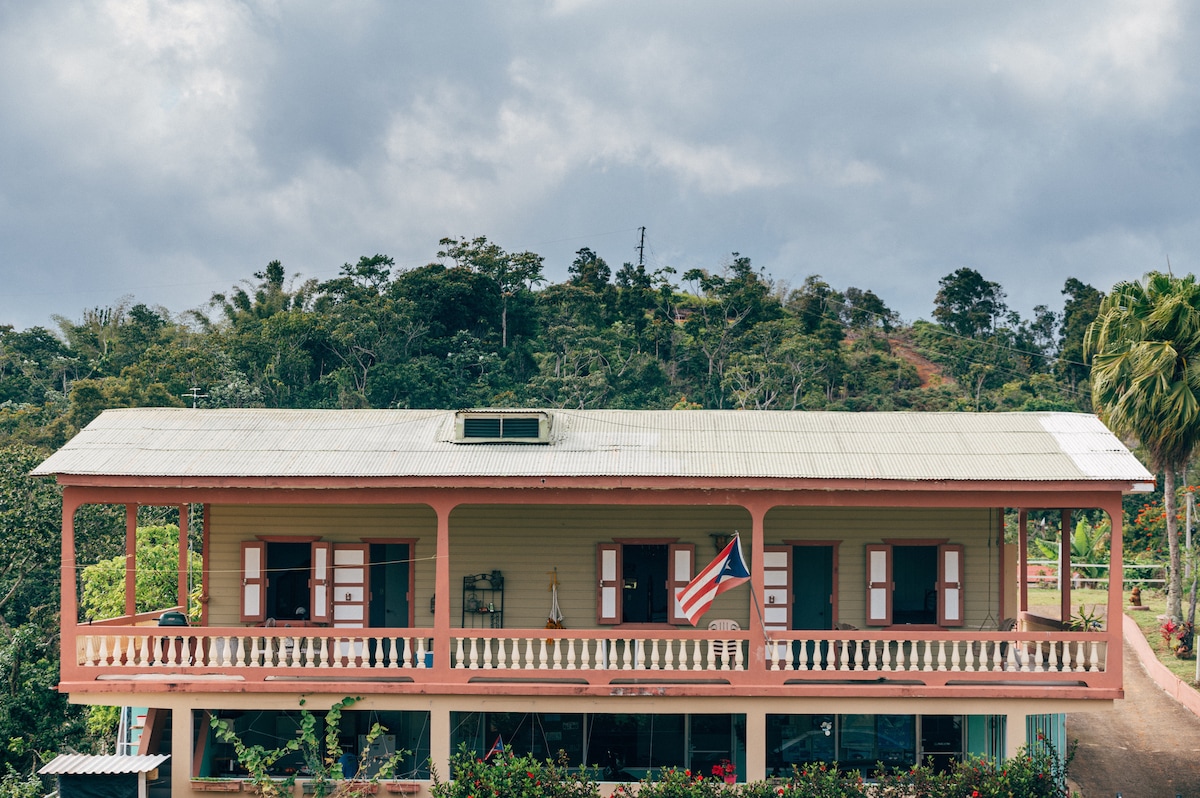 This 4 BR Country House with equipped kitchen accommodates up to 10. Magnificent view of the Caribbean Sea, inside 13 acres of luscious Rain Forest with hiking trails and pure water rivers. Located between Ponce and Jayuya, nearby attractions: rivers, ziplining, coffee tours, and mountain restaurants. As our place is located in a natural enclosure with nature-adventure activities potential such as river visits, hiking and more, we require signature of a rental agreement / release of liability.