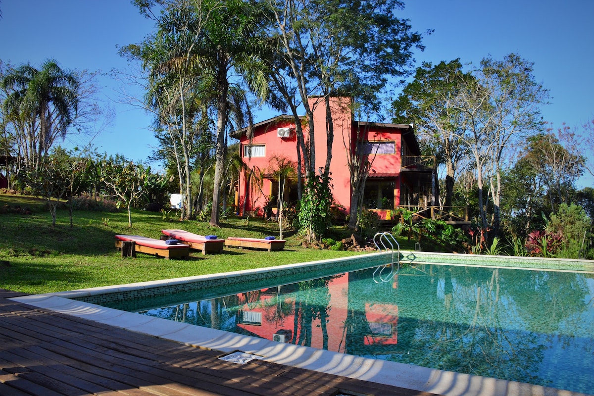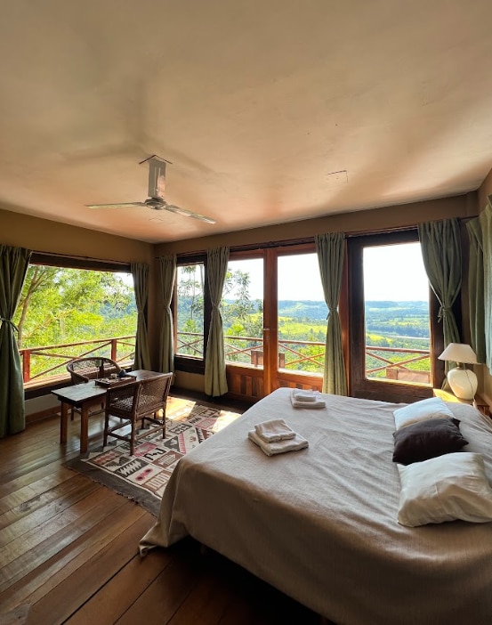 En la Reserva de Biosfera Yaboty, a solo 30 km de los Saltos de Moconá. Acceso por asfalto Ruta2. La fuente de energía es solar y hay un grupo electrógeno en caso que sea necesario.