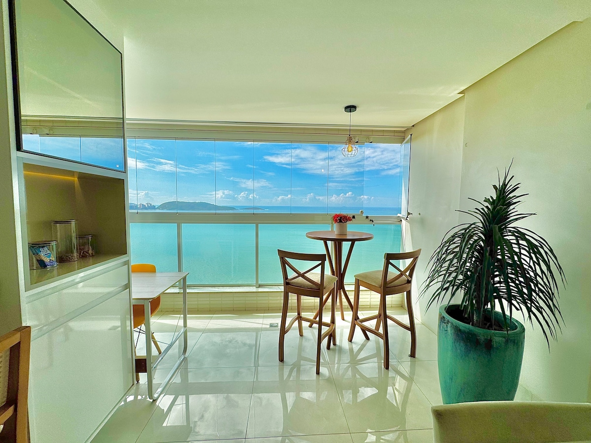 Um incrível e aconchegante apartamento frente para o mar para você desfrutar momentos inesquecíveis. Completo e bem equipado, o Ap dispõe de dois quartos grandes, sendo uma suíte, confortável sala com Tv, copa e cozinha integradas, vagas de garagem. Conta também com Wi-Fi de 450 MB Fibra. Situado em um charmoso, seguro e tranquilo bairro, na praia de Meaípe, proporcionando sossego e comodidade para sua viagem. O imóvel foi cuidadosamente planejado para o seu conforto e comodidade. Vc Merece!