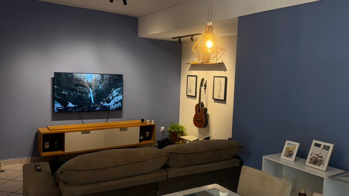 Apt decorado na Enseada Azul com WIFI em Guarapari a 300mts da praia da bacutia, não sendo necessário o uso de carro. O ap consta: 1 quarto com cama de casal e duas camas auxiliares, Smart TV e ar condicionado 1 banheiro Sala completa com sofá que pode servir como cama Cozinha completa com TODOS os utensílios; Lavanderia com varal e máquina de lavar; 1 vaga de garagem; Prédio com elevador;