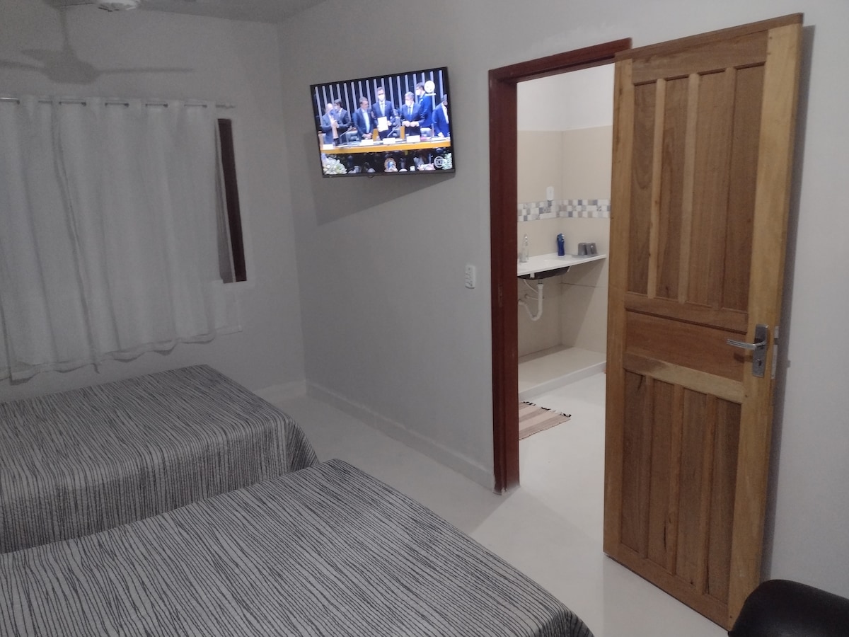 Conforto de uma linda suite de frente para o balanço azul da piscina. Perfeito para família de 4 pessoas. Cama de casal Cama de solteiro dupla Roupas de cama e banho incluso. ✅ Ar condicionado ✅ Frigobar ✅ Wi-Fi 300mb ✅ TV ✅ Piscina 🏊 ✅ Área Gourmet ✅ Panela de arroz elétrica ✅ Fogão elétrico ✅Air fryer ✅ Churrasqueira Rotatória ✅ Entrada independente. Fica a 2,6km da praia do morro (5 minutos de carro). Vale a pena descansar e desfrutar no Flat. PROIBIDO 🚫 FUMAR NO FLAT!!!