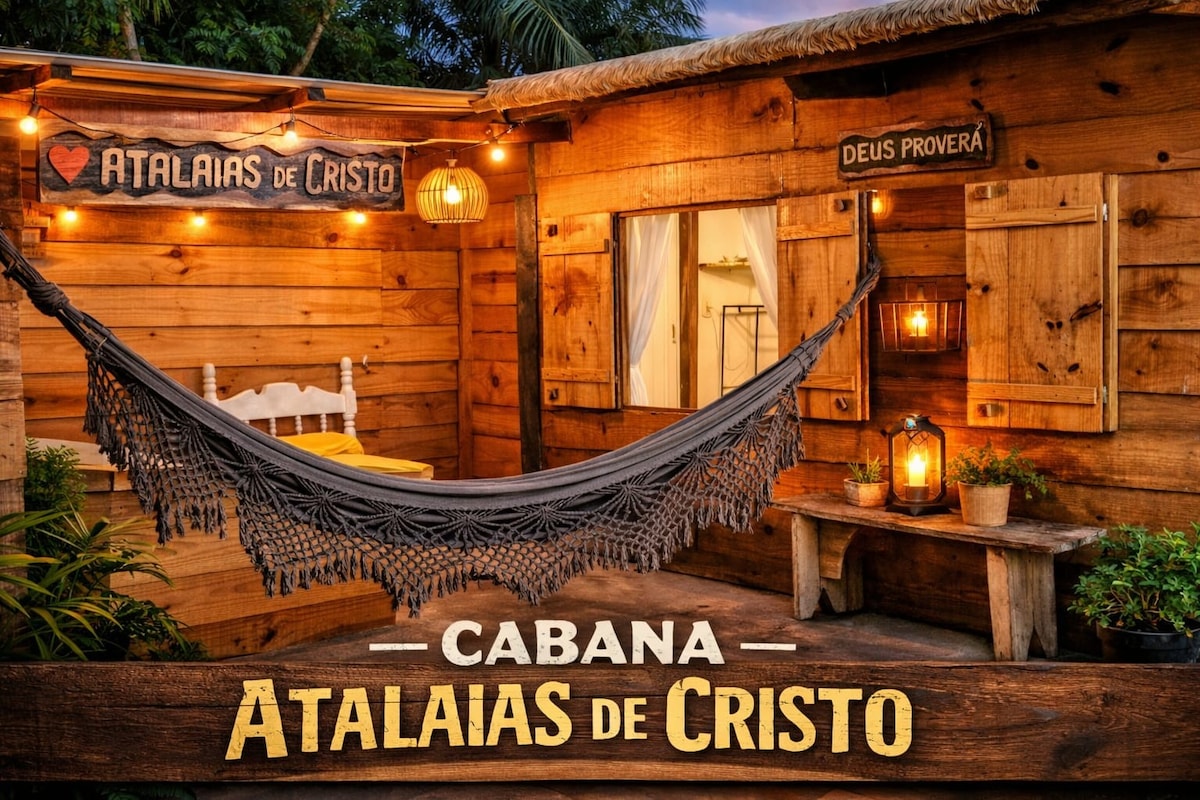 "Cabana Atalaias de Cristo: Charme, Rusticidade e Privacidade." Foi pensada para ser mais do que uma hospedagem é uma experiência de paz. Um espaço aconchegante, com estilo rústico e toques românticos, ideal para viver momentos especiais. Cada detalhe convida você a relaxar: Área externa reservada, perfeita para um café da manhã tranquilo. Cantinho acolhedor para noites mais intimistas. Ambiente que mistura clima de montanha com a energia da praia. Silêncio e privacidade.