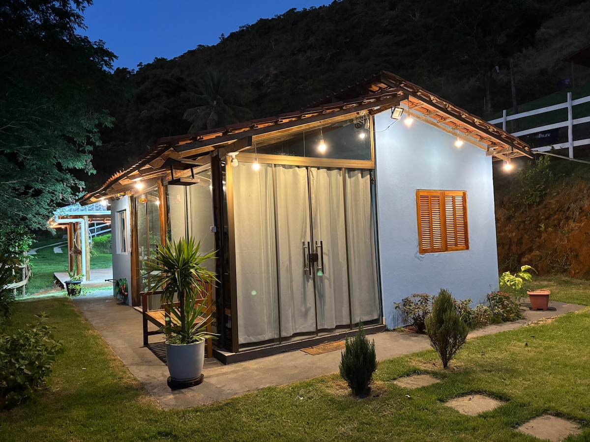 Casa com 2 quartos e cozinha integrada com sala. Acomoda bem 6 pessoas. Local de fácil acesso, apenas 400 metros de estrada de chão. Na Rota da Ferradura, próximo à cervejarias e restaurantes. A 20 minutos das principais praias de Guarapari. Contamos com: Salão de festas para realização festas de aniversário, casamento, batizados, confraternizações etc. Com jogos de mesas e cadeiras. Churrasqueira móvel a carvão, elétrica e a gás; Projetor Smart Tv; Caixa de som ambiente.