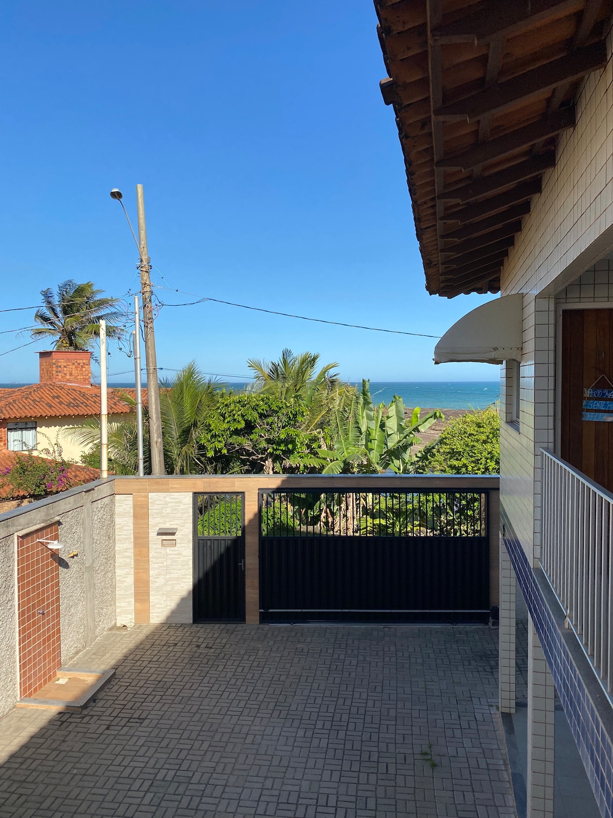 Suíte com linda vista, localizada na Enseada Azul em Guarapari/ES. Próxima a 7 praias paradisíacas: Peracanga, Guaibura, Bacutia, Jogo da baleia, Bairristas, praia dos padres entre outras. A acomodação oferece banheiro privativo, cama de casal, TV Smart, Wi-Fi, frigobar e ventilador. Você também terá acesso à cozinha e área de serviço compartilhada, além de garagem e banheiro externo.