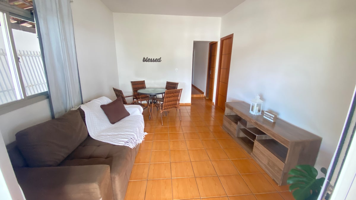 Apartamento aconchegante, com ar condicionado, WI-FI e com vista panorâmica para as principais praias de Guarapari. Sinta-se no mar e até mesmo veja animais marinhos sem sair do quarto. Local bem ventilado e com sol da manhã, bem pertinho do centro da cidade com supermercados, farmácias e outras comodidades. Espaço com 01 quarto de casal com ar condicionado e outro quarto de casal de frente pro mar com ventilador. Não oferecemos roupas de cama e banho.