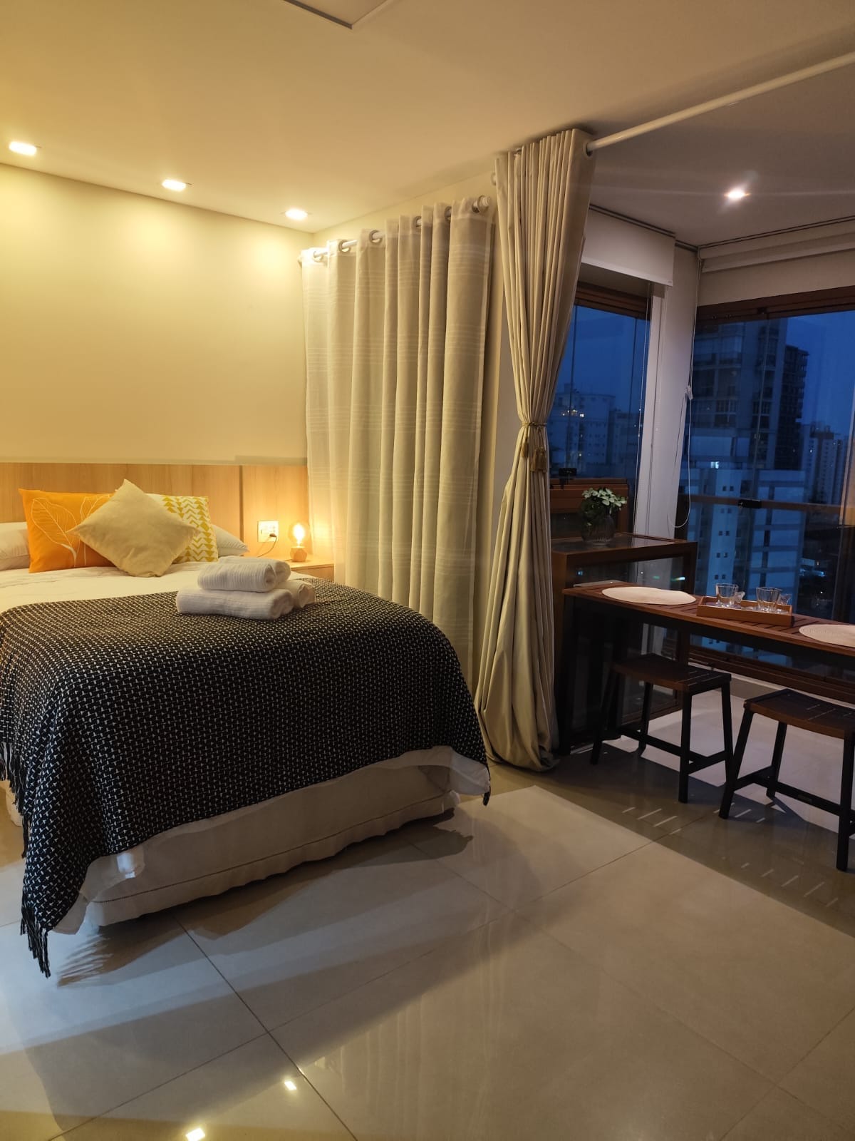 Se você gosta de luz natural, este estúdio na Vila Madalena é o lugar perfeito. Localizado no primeiro andar, em uma rua tranquila, a poucos passos de um lindo parque e de todos os bares, restaurantes, galerias de arte e música ao vivo que a Vila Madalena tem a oferecer. O estúdio possui cama de casal, armário, área de trabalho, TV de 43", Kitchenette, AC, e água quente no banheiro. O complexo de apartamentos possui piscina infinita, lavanderia, fogueira, recepção 24 horas e área comum.