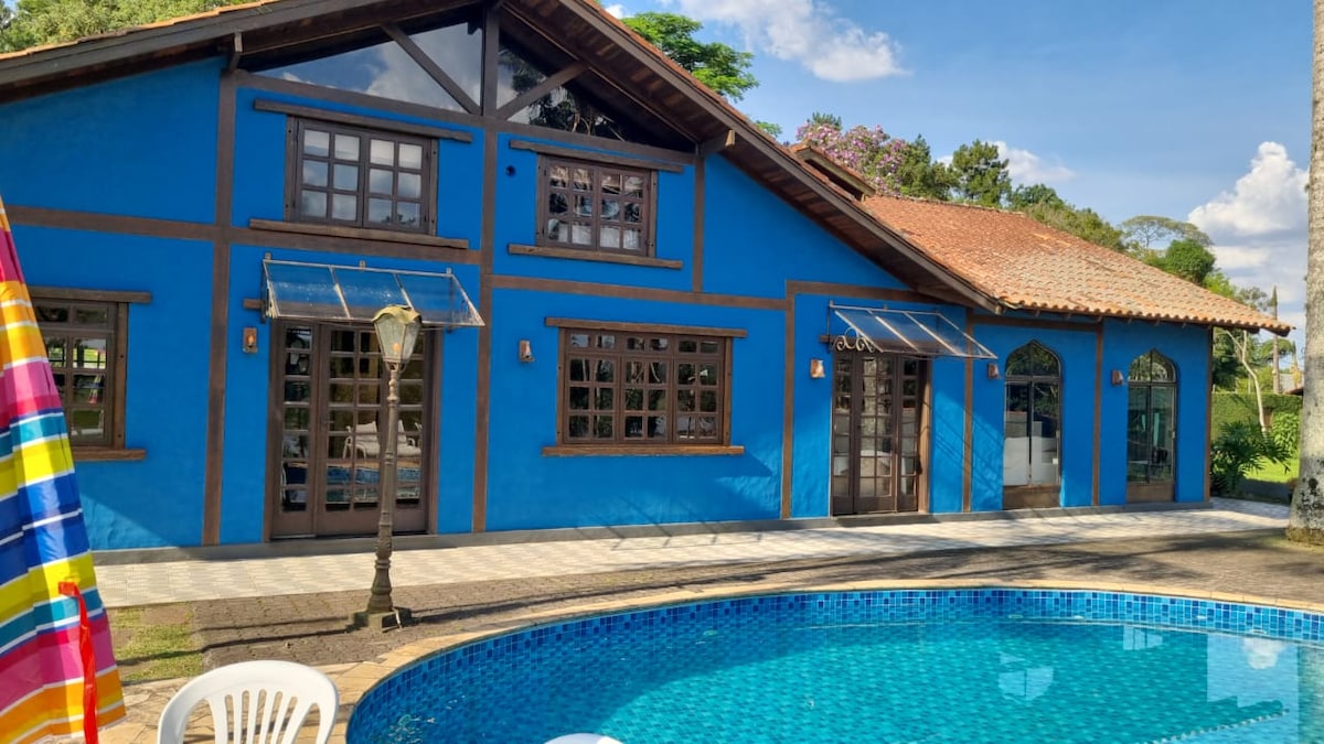 Recanto Riviera, a country house in the heart of São Paulo, just 18km from Congonhas Airport, located on a peninsula by the Guarapiranga Reservoir with 24-hour security. Surrounded by native forest, offering nature and tranquility, perfect for enjoying water sports like sailing and kayaking, as well as hiking, horseback riding, and a petting farm. We offer complete leisure with a pool, gourmet area, playroom, fireplace, hot tub, and fire pit. Full infrastructure for families with children!