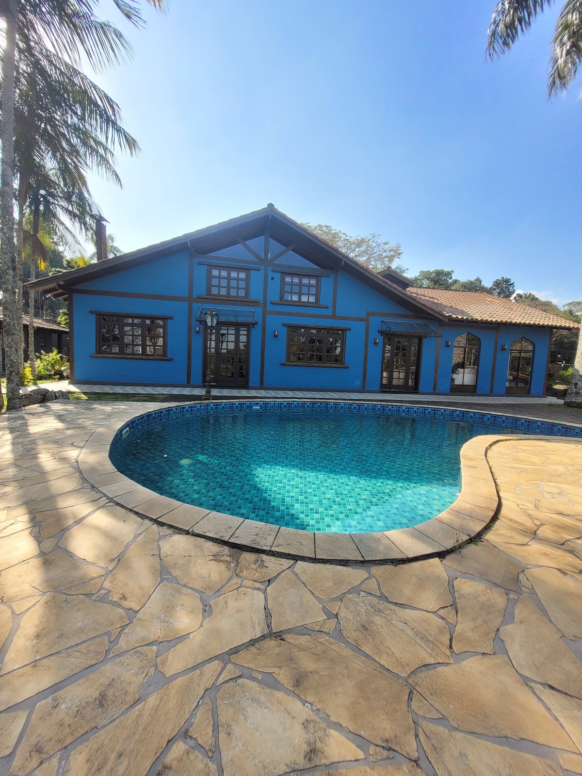 A 23 KM de SP, a Casa Relax é ideal para reunião de família e amigos. Ótimo para fazer o planejamento estratégico da sua equipe. Natureza, Churrasqueira e Piscina Aquecida, diversão garantida até em dias frios e nublados. Late Checkout 18h. Roupa de cama/banho, Berço, Banheiro com amenities, cozinha equipada - lava-louças. Aceitamos pets. Condomínio de alto padrão, 5 suítes, jardim, fogo-de-chão, espaço de trabalho, ampla sala de TV e internet rápida, em uma casa de 400 m. Temos energia solar.