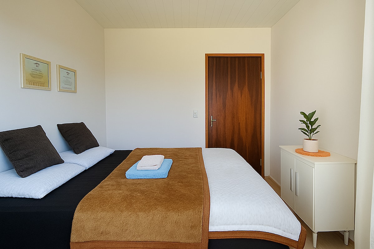 Aqui você vai encontrar conforto, tranquilidade, segurança e espaço muito bem localizado. As principais avaliações do nosso espaço: “Lugar aconchegante, limpo, organizado, bem localizado e flexibilidade para o check in e check out” Estacionamento coberto é cortesia. Fazemos aluguel de no mínimo 2 noites. Para aluguel de no mínimo 1 semana tem 20% e mensal tem 40% de desconto. Supermercados: 4 quadras Posto de combustível, farmácia, restaurante e lanchonetes: 1 quadra. Não permitimos festas.