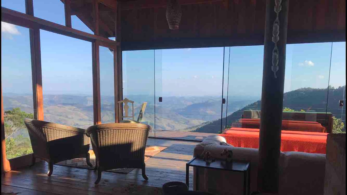 Lugar aconchegante . Localizada na porção superior de uma montanha com uma vista inspiradora. Anexo da minha casa, totalmente independente, inclusive a Hidro e piscina. Possui 2 suítes, cozinha gourmet americana, sala com TV SKY , WI-FI com Starlink (Alta velocidade) e aquecedores elétricos nos quartos. Do lado de fora, há uma piscina de borda infinita, hidromassagem, lareira de chão e total privacidade. À 900 metros do centro da cidade e totalmente asfaltada. Amamos animais !!! Nos consulte