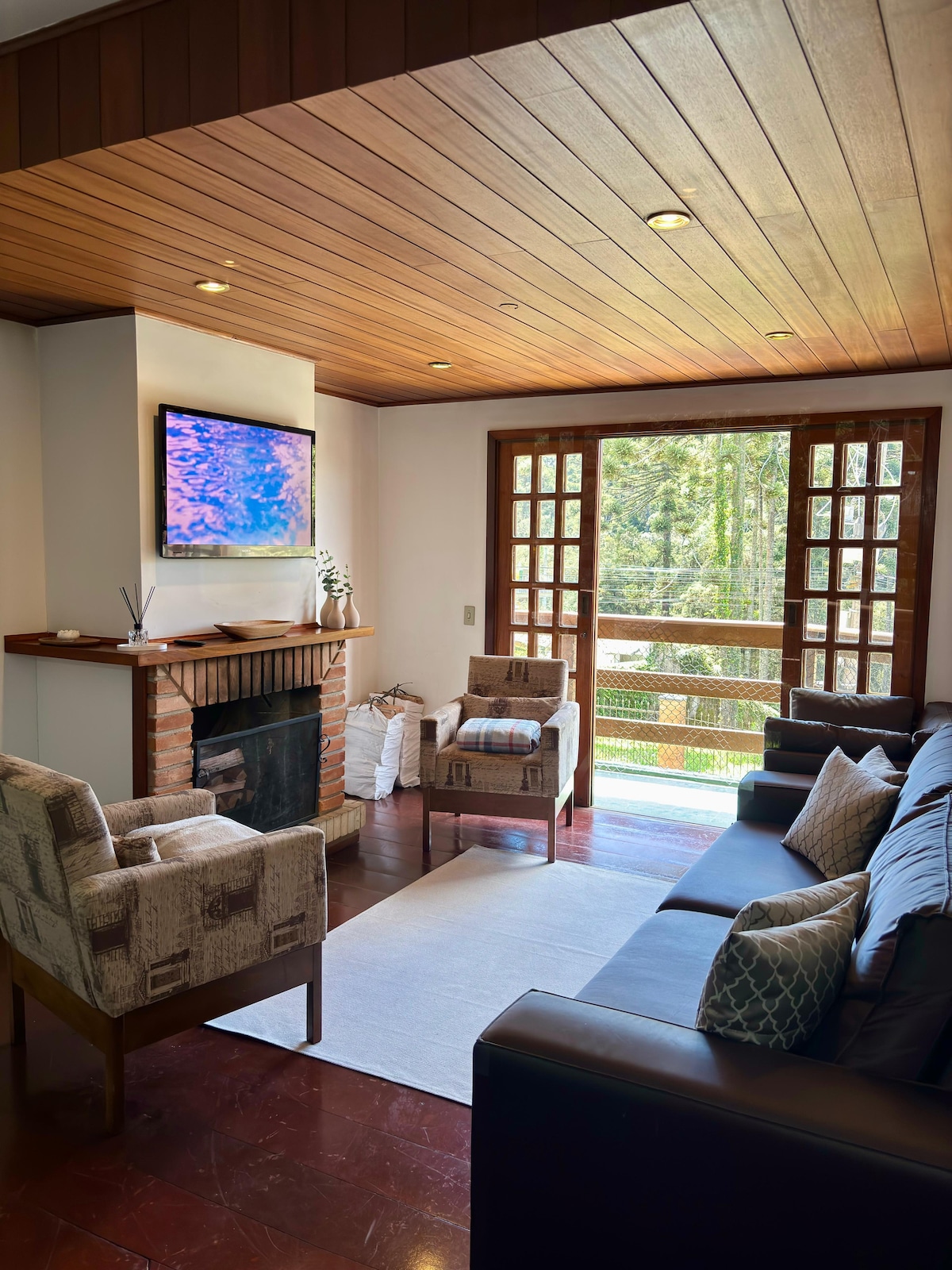 3 suítes com 3 banheiras, camas king size e vista ESPETACULAR para as montanhas. Projetada para proporcionar verdadeira imersão na mantiqueira com conforto e sofisticação. As camas, os lençóis, os travesseiros, todos de altíssima qualidade garantem um repouso digno de uma hospedagem 5 estrelas. Banheiros, cozinha e área gourmet com piso aquecido, toalheiro elétrico, aquecedores a óleo, lareira ecológica e aquecimento em todas as pias. Ideal para até 3 famílias.