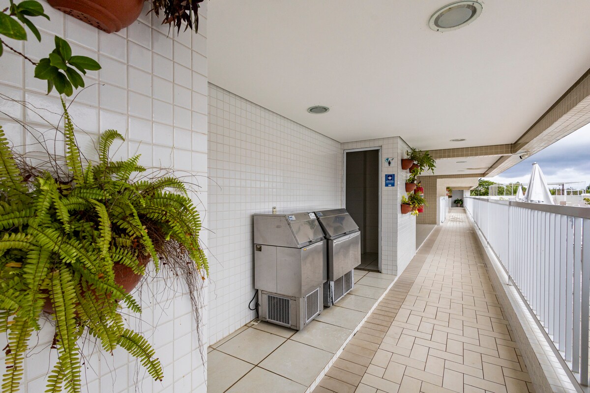 Prédio encantador e tudo muito novo. Perto de tudo, como shopping, supermercado e praia. Localizado no módulo 5 - sua melhor opção. Nesse edifício você e sua família vão encontrar conforto e diversão. Temos academia, piscina aquecida interna e externa no rooftop sauna, kids place, quadra, brinquedo e sala de jogos. O apartamento tem toalhas e jogo de cama. Estacionamento amplo e WIFI potente E Net TV COMPLETO.