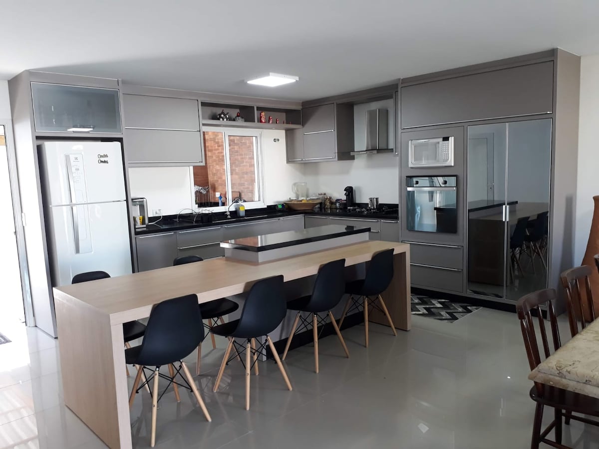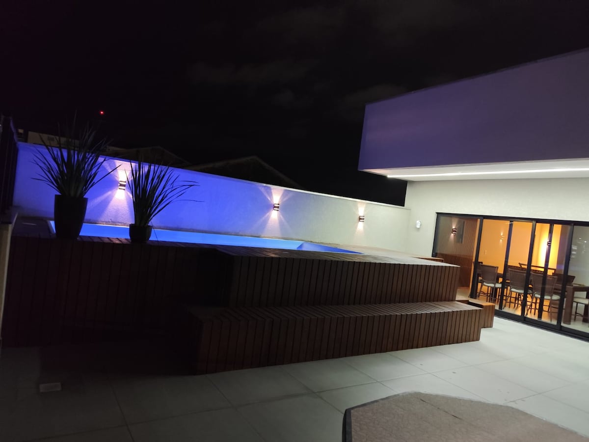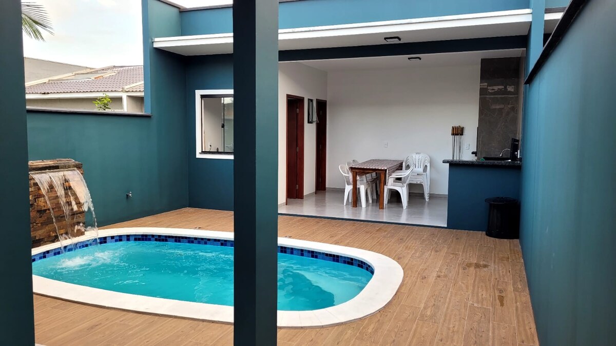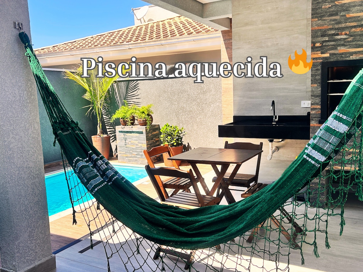 IMÓVEL ALTO PADRÃO com Piscina Aquecida 32°c🌡️, 3 quartos, todos com ar condicionado 12000 BTUs (Só frio), 2 deles são suítes, churrasqueira de frente para piscina, cozinha completa, lavanderia, 2 vagas para carros de médio porte. TENSÃO ELÉTRICA DO IMÓVEL 110V. DISPONIBILIZAMOS ROUPAS DE CAMA, (Travesseiros com capas, lençóis e mantas de microfibra). NÃO DISPONIBILIZAMOS TOALHAS DE BANHO E DE ROSTO. ACEITAMOS PETS DE PEQUENO PORTE.