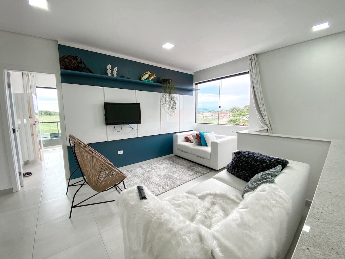 O estúdio está localizado próximo da Av. Juscelino Kubitscheck, em uma caminhada de 15 minutos você chegará na praia central de Caiobá. Dispõe de vaga de garagem coberta e segurança 24 horas. Ideal para descanso ou mesmo home office. O estúdio é confortável, compacto e funcional. Bem preparado pra que você tenha uma ótima estadia. Além disso, você poderá conhecer Matinhos através de guia personalizado para experiências em qualquer estação.