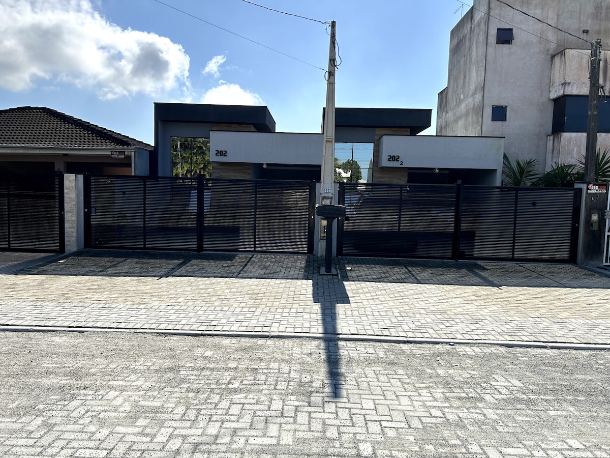 Viva dias incríveis em Guaratuba! Nossa casa moderna oferece total privacidade a apenas 3 min de carro da praia. Perfeita para até 9 pessoas, conta com 2 suítes, ar-condicionado e mezanino para jovens. Destaques: • Piscina privativa com iluminação noturna. • Área Gourmet completa com churrasqueira e cervejeira. • Wi-Fi rápido e 3 vagas de garagem. • Kit bebê: Disponibilizamos berço e cadeirão. Localizada no seguro bairro Cohapar, é o refúgio ideal para famílias que buscam conforto e lazer! 🌊