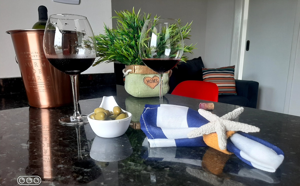 Relaxe neste lugar único e tranquilo, a menos de 100 metros do mar, com uma vista maravilhosa da sacada do apartamento, tudo novo para tornar sua estadia perfeita. Próximo de tudo, restaurantes, lojas, conveniências, mercado, cinema, Morro do Cristo e Praia Central. Ar condicionado nos dois quartos, suíte com vista para o mar, cozinha completa, internet e tv 42 polegadas com amazon disponível Disponibilizamos cadeiras de praia, 1 guarda-sol e 1 cooler. 1 VAGA DE GARAGEM PARA CARRO MÉDIO