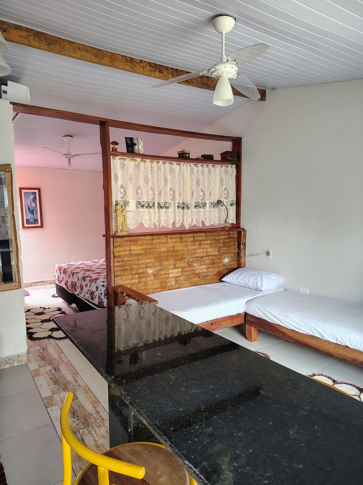 Feriados e fins de semana kitnet conjugada , próximo de tdo comercio local pracinha, shows 5 qdrs da praia, ambiente familiar calmo e aconchegante