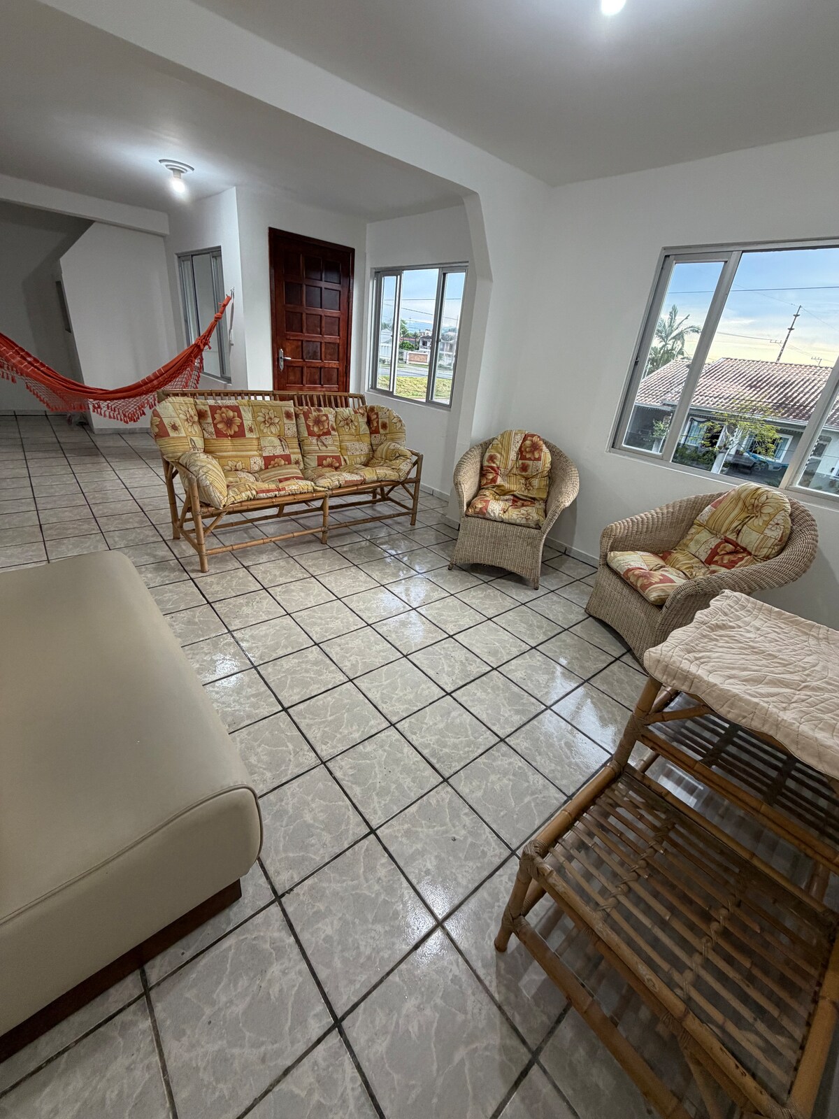 Venha relaxar e desestressar nessa tranquila Baiuka. Pequena porém com tudo que precisa para curtir uma praia sem ter que ficar longe dela, pois saiu do portão pra fora o lindo mar está ali para te receber. Ótimo para casal, casal com até 2 filhos ou 2 casais, pois o espaço tem além da suite um sofá cama casal e com saída privativa para o banheiro tbem. Tem todos os utensílios que precisam, Ar condicionado e Wi-Fi gratuito e churrasqueira tbem. A energia é 220, mas tem um transformador .