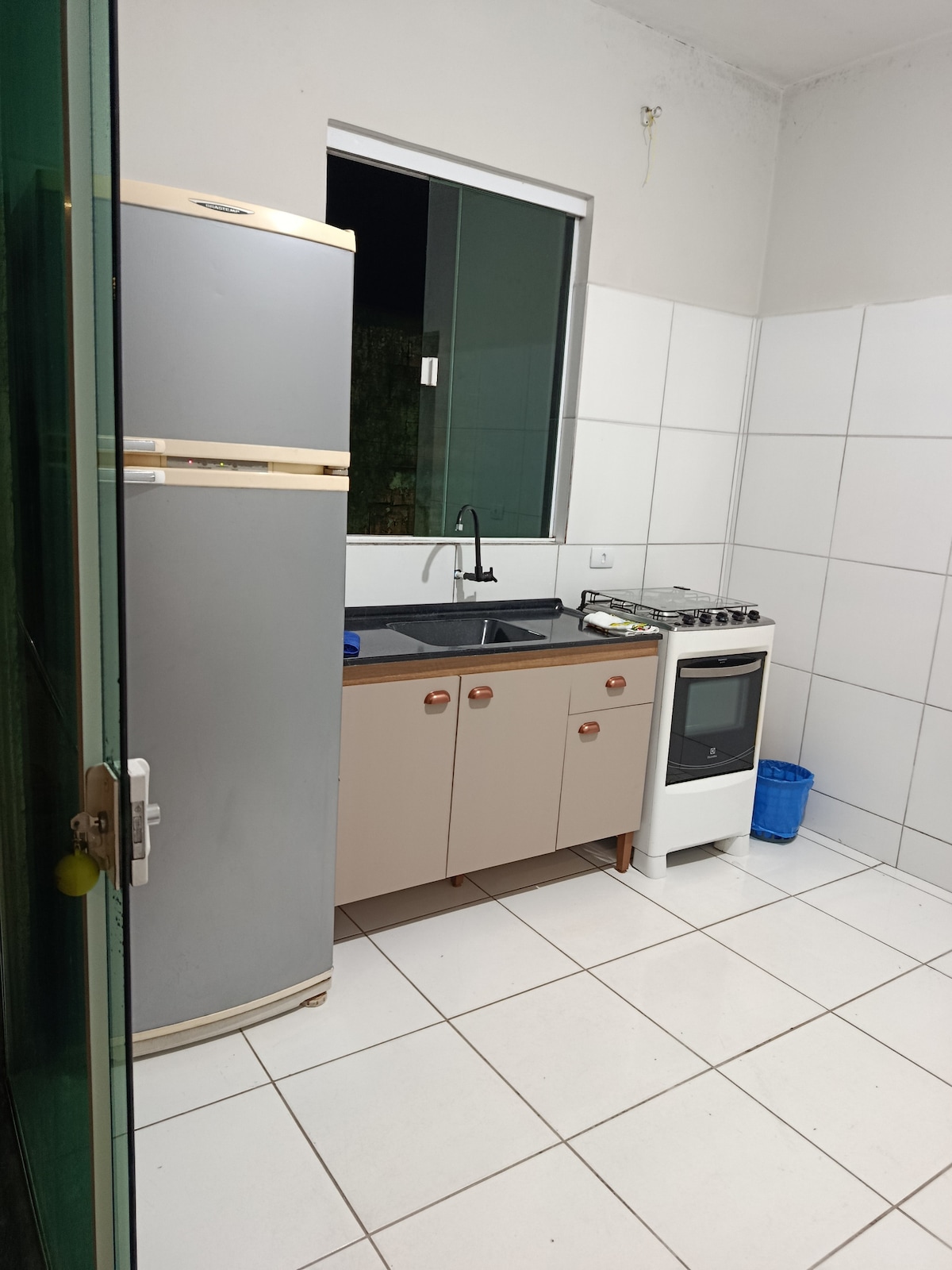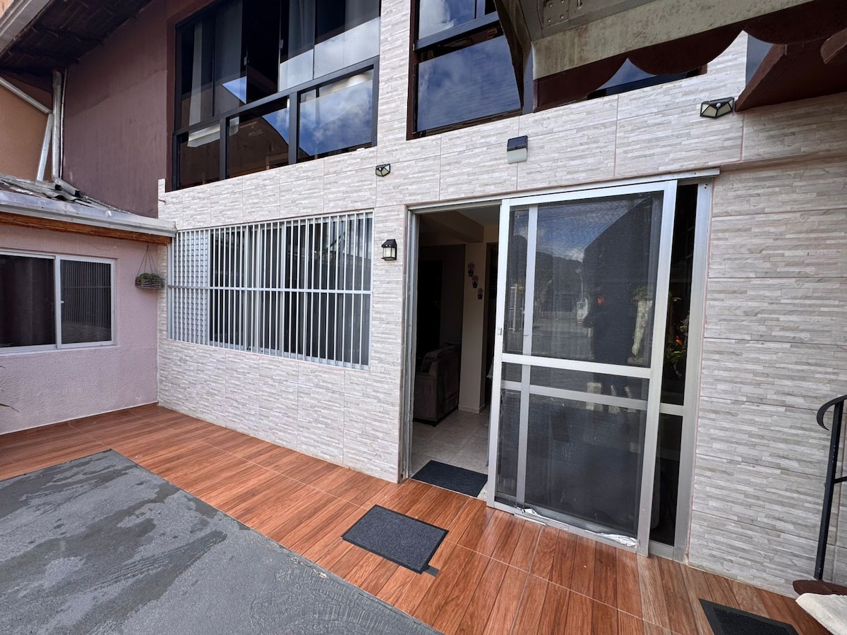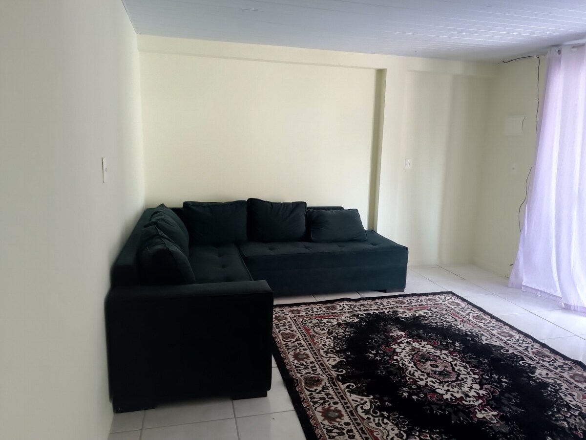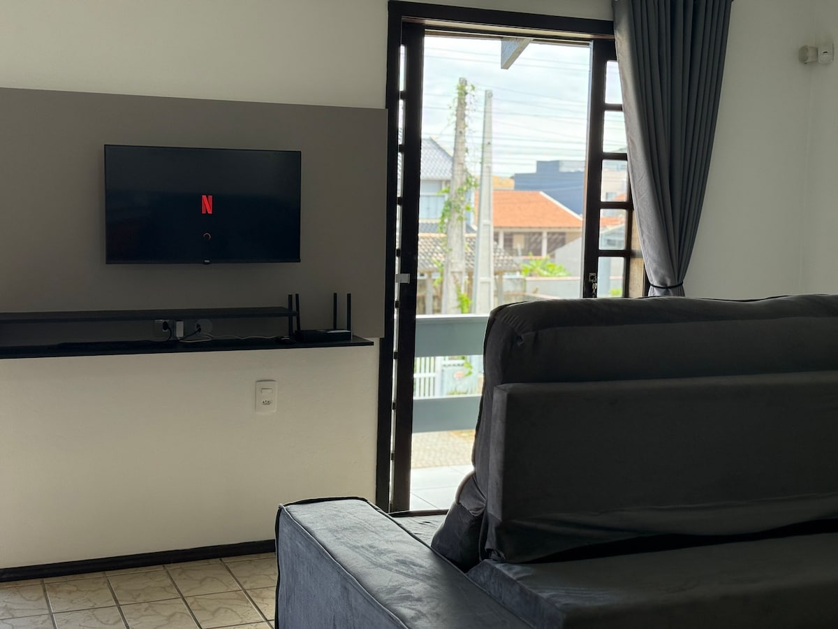 Fica a 1 quadra da praia. Com sala/cozinha (bicama) + 1 quarto (suíte, cama de casal), tem todo conforto para o hóspede economizar $ e cozinhar no local (fogão, geladeira e utensílios domésticos, churrasqueira e lavanderia externa). Acomoda até 4 pessoas. Fica nos fundos da minha casa, possui portão divisorio entre as casas. É permitido pets, desde que dóceis. O carro deve ficar estacionado paralelo à rua (vizinhança tranquila). Avisar sobre checkin após as 21h, pois serão avaliados .