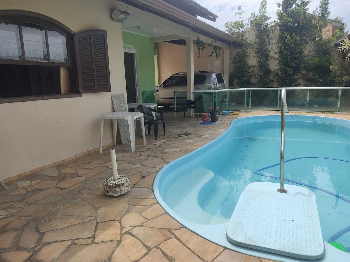 Opção para aproveitar a praia e descansar. Este espaço contém 1 quarto com uma cama de casal e 2 de solteiro, banheiro mais 1 cozinha com utensílios básicos e 1 cama de casal o quintal amplo que pode ser usado como estacionamento . Distância 600 mtrs da praia próximo tbm a supermercado. Na frente da propriedade fica a casa da anfitriã Roseli, ao lado outra casa de hóspedes completa (disponível para locação em outro anúncio)