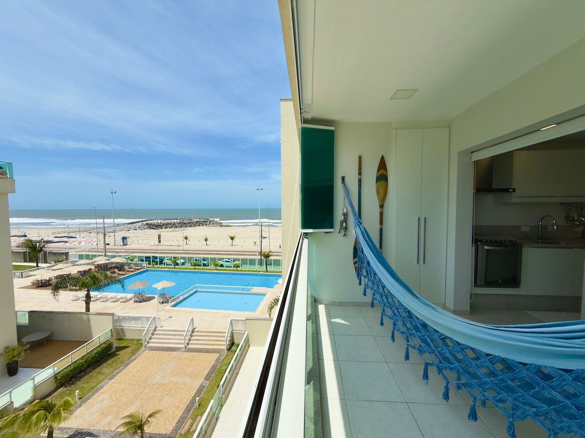 This apartment is an incredible experience. On the beach and overlooking the sea in the best location of Praia Brava - Caiobá PR. It has 3 comfortable rooms, equipped with air conditioning, 2 bathrooms, TV room combined with dining room and balcony with table and chairs, kitchen with new appliances, laundry with machine and dryer. Wi-Fi, elevator, covered garage and 24 hour doorman. Ideal for couples and families. Spacious, bright and decorated to be your beach home!
