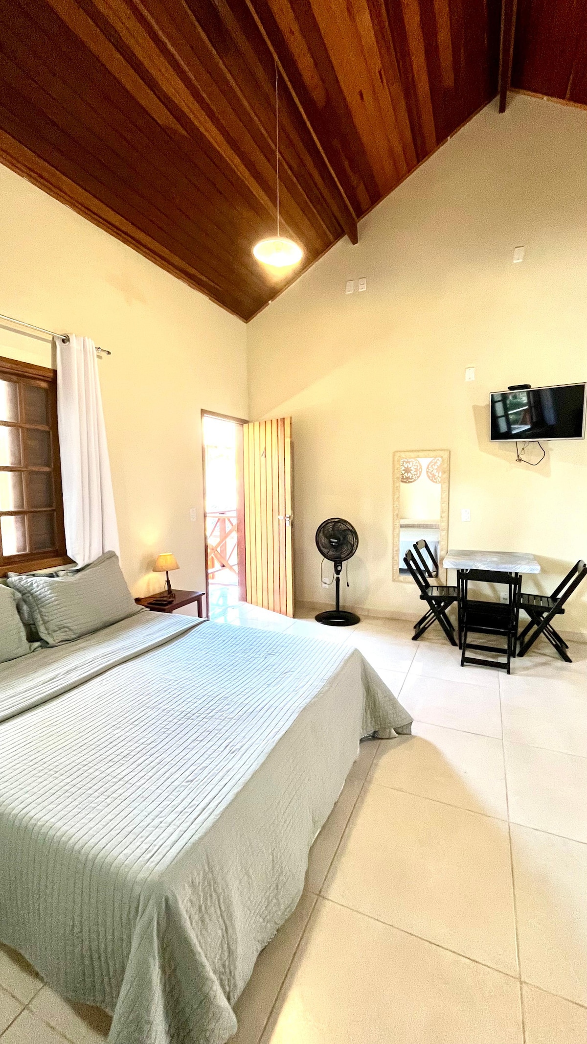 Apartamento tipo estúdio todo mobiliado, de uso exclusivo e muito aconchegante, com cozinha completa, banheiro, Internet wifi, SmartTv , ar condicionado, ventilador, chuveiro com água quente, uma cama casal e cama box solteiro com auxiliar, vista montanha. Numa das regiões mais procuradas da Costa Verde! Localização privilegiada: no segundo andar de prédio com acesso (rua) pela rua da praia de Garatucaia e segundo acesso direto na areia da praia Inclui vaga estacionamento para 1 carro.