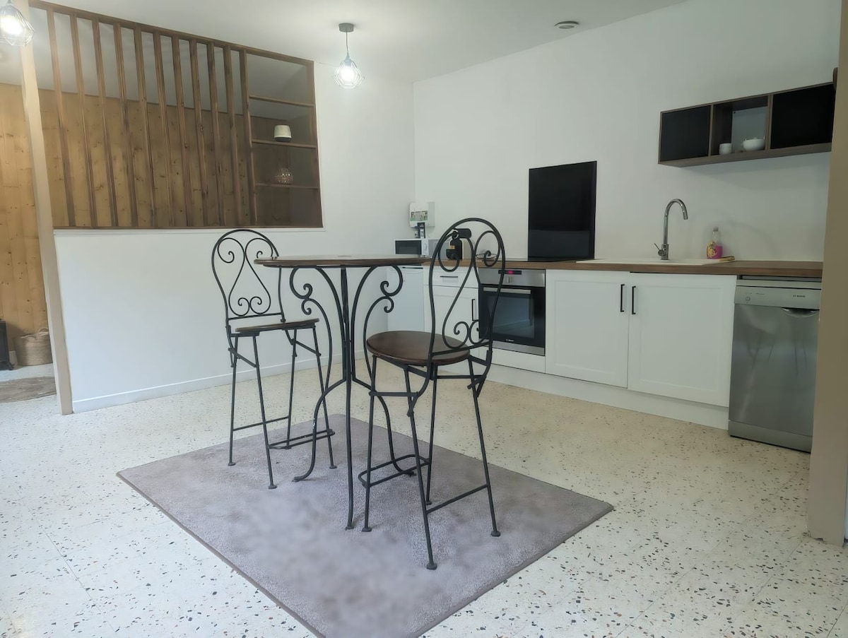 Détendez vous dans ce gîte cosy, véritable lieu calme et élégant. Notre gîte a été entièrement rénové en 2022, l'accent a été mis sur la décoration et la literie. Cette Location saisonnière studio (2p) tout équipé vous propose : 1 séjour lumineux, 1 ch séparée, 1 sdb (douche + WC). La terrasse privative, le petit jardin, l'entrée indépendante, le parking privé sécurisé gratuit, vous permettront de vous sentir comme à la maison. Option petit déjeuner, arrivée possible à partir de 16H00.
