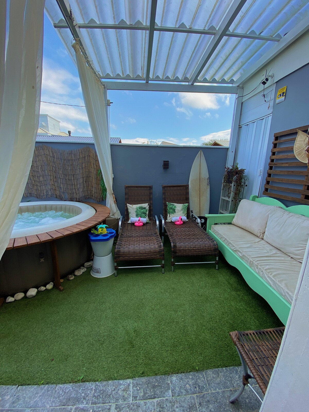The Despertar Suite, located in Praia do Rosa - Imbituba/SC. A cozy and pleasant space for couples looking for comfort and a unique experience with a beautiful view of the sea and a delicious breakfast. Our space has a structure surrounded by nature, with beach decor, totally relevant to the region. In addition, we have a beautiful jacuzzi with hydro and a luxurious suite at your disposal. Distance to Praia do Rosa: 1.5km (10min).