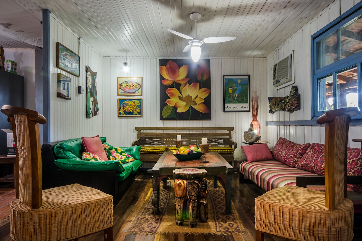 A Rustic Cottage in front of the Conceição Lagoon, surrounded by Native Forest, with a Crystal Water Stream to bathe, a heated Jacuzzi with spring water, sacred fire to warm the nights and an incredible garden to sunbathe or meditate. It is a chalet of great comfort and also privacy. Ideal for couples looking to celebrate love, friends looking to get together and enjoy nature, families who want peace and quiet, or writers and artists looking for inspiration.