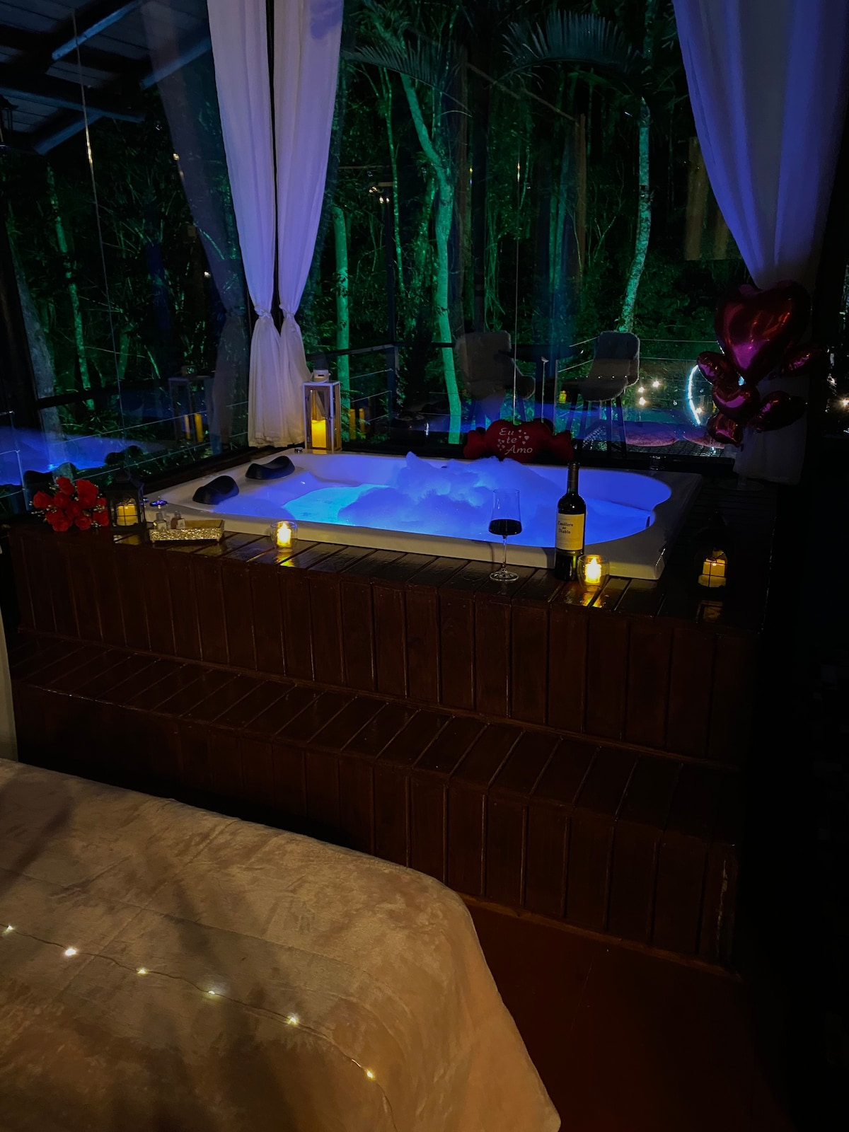O Chalé Secreto é ideal para quem busca privacidade e conforto em meio à natureza. Conta com hidro externa privativa, banheira aquecida no quarto, banheiro elegante com chuveiro a gás, Smart TV 43”, Wi-Fi de 600MB, cozinha completa e estacionamento com acesso direto. Sem vizinhos por perto, estrada em ótimo estado e opção de café da manhã para tornar sua experiência ainda mais especial.