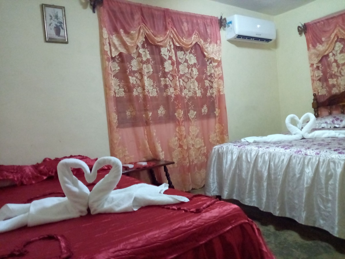 Es la habitación más grande de las casas de renta de la Playa Guardalavaca. Esta a sólo pocos minutos de la Playa ,aproximadamente 10 mtos caminando.Tiene balcón al frente y una terraza grande en la parte trasera. Ademas cuando el cliente necesite taxi yo tengo el servicio ya sea para moverlo a otros lugares de interés o llevarlo y traerlo desde y hacia el aeropuerto o estación de Tren o Bus. Servicio de desayuno no incluido y para la cena tengo un lugar cerca donde pueden hacerlo.