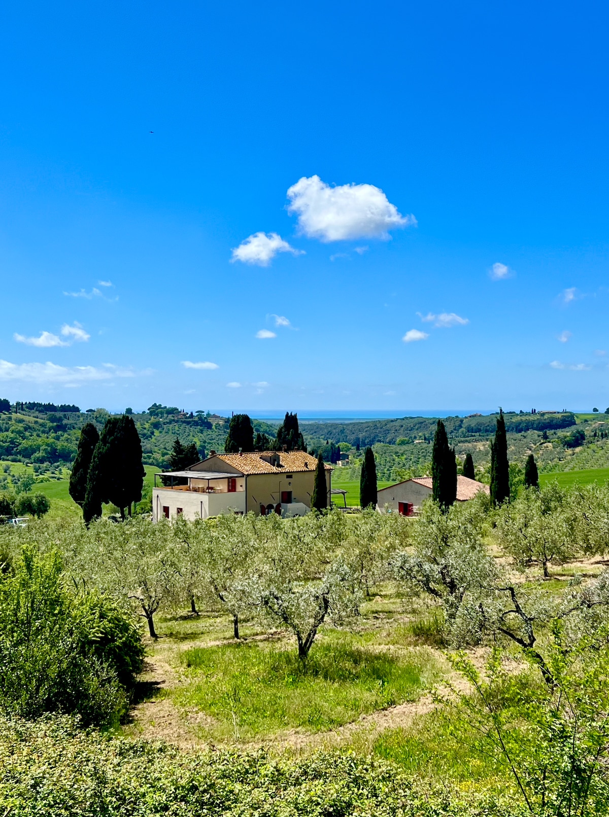 The Casa del Poggio (house at the hill) is located in the hills of Castagneto Carducci and is part of our organic farm. It is immersed in a peaceful countryside surrounded by olive groves, vineyards and woodland and enjoys a beautiful view of the sea and the castle of Castagneto Carducci. At the same time its position allows you to reach the village in just 10 minutes by foot and the beaches of Marina di Castagneto in 10 minutes by car or bus.