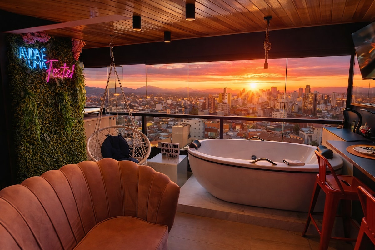 浪漫豪华单间公寓 浴缸和泳池 海景