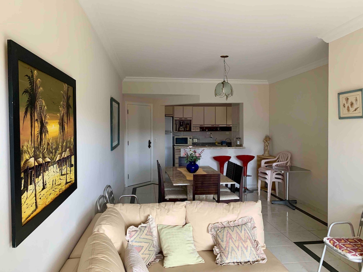Relaxe neste espaço calmo e tranquilo!!! ATENÇÃO IMPORTANTE: Não oferecemos roupa de cama e banho, é necessário os hóspedes levarem. Nosso apartamento é bem aconchegante, bem localizado, possui ar condicionado split no quarto e sala, fica próximo a praça do café na enseada, apenas 100 metros da praia. O prédio não possui elevador, porém a escada é bem tranquila, o apartamento fica situado no 2 andar do prédio de fácil acesso, temos garagem vaga para 1 carro e com portão automático.