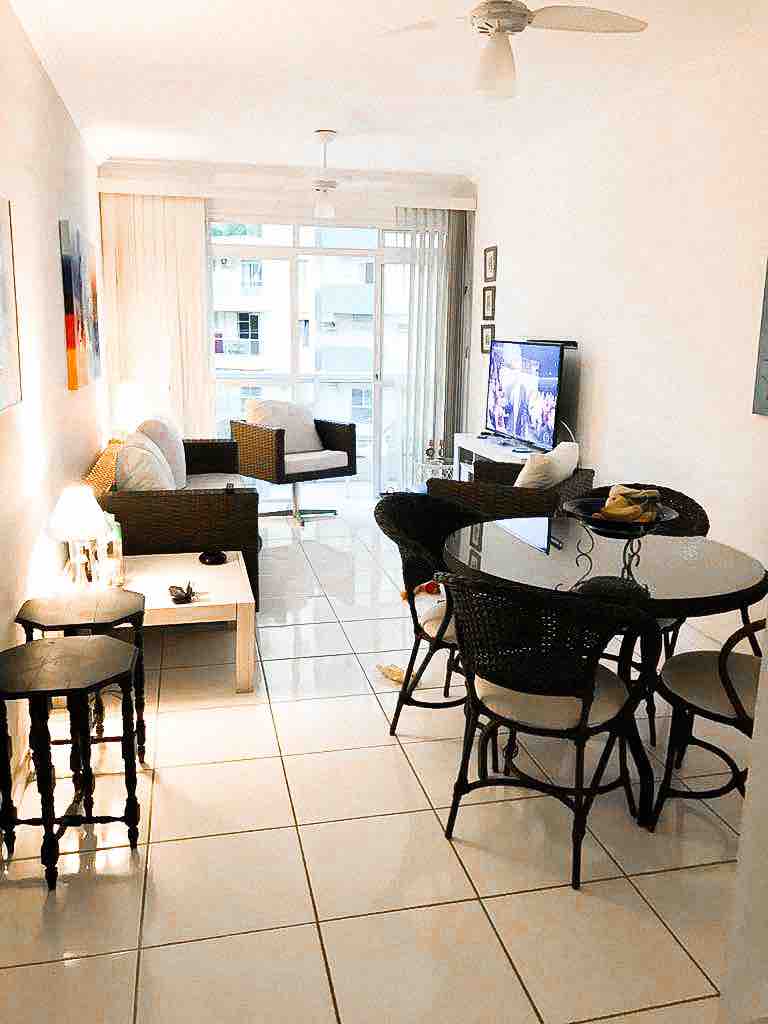 Exclusividade é o conceito desse apartamento com Vista panorâmica do Mar Finamente Renovado e Decorado 1 Suíte Master c/ar cond, 2 banheiros, sala/Living ampliado c/ar cond, cozinha, Gourmet, lavanderia c/Lava e seca LG e 1 vaga garagem coberta Roupas de cama/banho incluso 1 Berço portátil Safety Internet rápida Totalmente equipado Nas proximidades tem mercado, Farmácia, Bares e Restaurantes O Condomínio fechado c/portaria presencial 24hs e câmeras de segurança na área comum externa