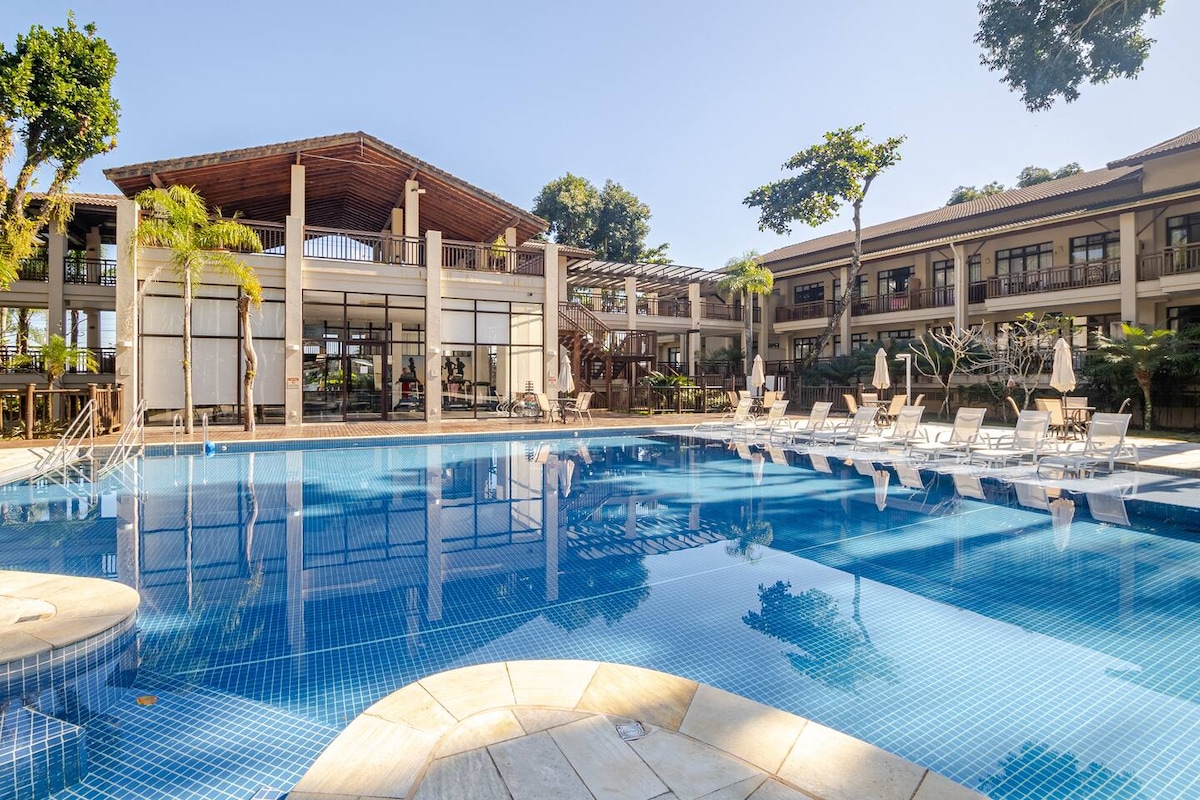 Olá querido(a) hóspede, Estamos loucos para recebê-lo(s) em nosso apê! O condomínio, além de proporcionar segurança 24hrs e comodidade, também conta com serviço de limpeza diária e uma linda piscina com cachoeira. O apê dispõe de 2 vagas cobertas no estacionamento, varanda gourmet, 3 AC´s, fina decoração, sala de estar, sala de TV, 1 suíte, 2 banheiros e WI FI
