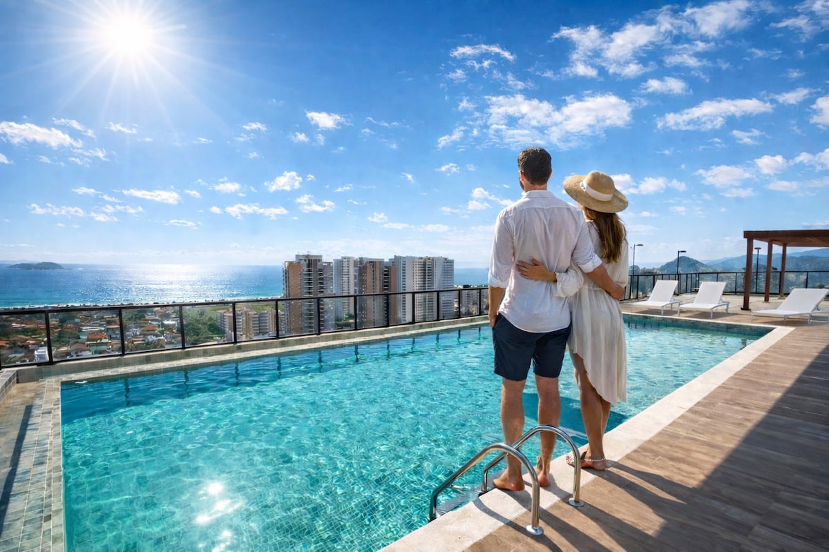 Apartamento Duplex 100mt Condomínio Penhasco das Tartarugas Localizado na praia enseada na Rua Gilberto Glasser 662 - Guarujá 500 metros da praia, 2 min de carro ou 12 min a pé Acomoda confortavelmente 6 pessoas, espaço família e aconchegante Piscina com borda infinita com vista incrível para o mar Condomínio com portaria e segurança 24hrs Aceitamos seu Pet