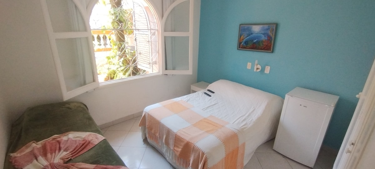 Fica localizada a 3 quadras ou 5 min a pé da Praia da Enseada. Os quartos são suítes com TV e VENTILADOR DE TETO. ESTÁ INCLUSO: Jardim, piscina (aberta das 8h ás 22h), churrasqueira (cobrada taxa extra), Wi-Fi, serviço de quarto, estacionamento, geladeira e micro-ondas compartilhados. A Pousada NÃO oferece café da manhã. Check-in a partir das 14h e check-out até as 12h.