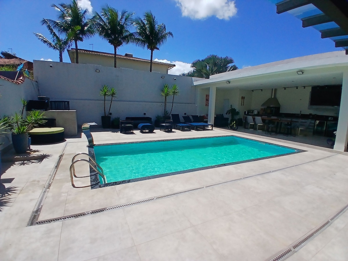 House located in a gated community with security and controlled access. The condominium has motorized patrol and security guards at specific posts. The property was designed to comfortably accommodate a large family through 7 suites, 2 kitchens, 2 living rooms, swimming pool and gourmet area with barbecue, pizza oven and wood burning stove. The condominium is family-friendly, for those looking to rest and enjoy with their family in peace and comfort.