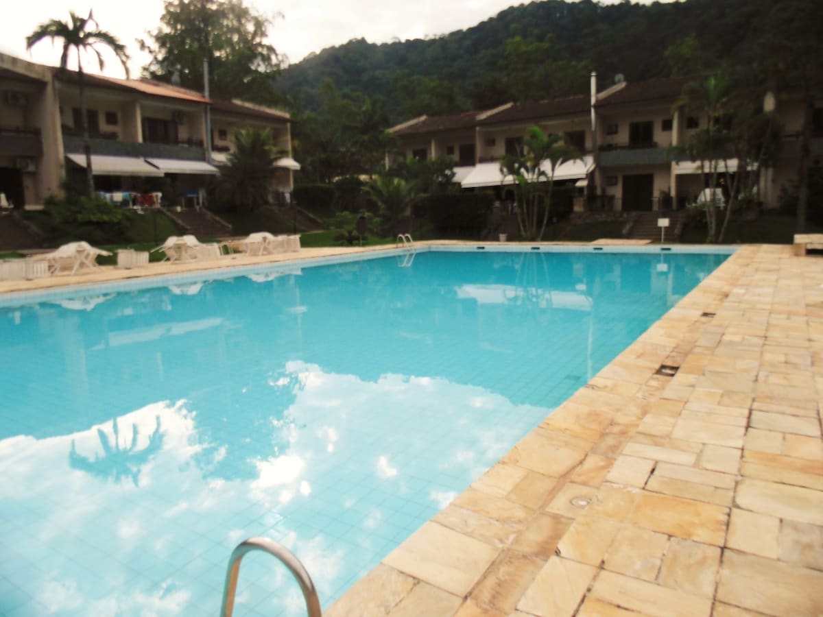 Leve toda a família a este ótimo lugar com muito espaço para se divertir, aqui vc tem a opção de tomar banho de rio cachoeira piscinas e mar, Caruara área continental de Santos, mas está a 10 km da praia de Bertioga e uns 20 km da cidade de Guarujá lugar ideal para reunir a família e amigos.