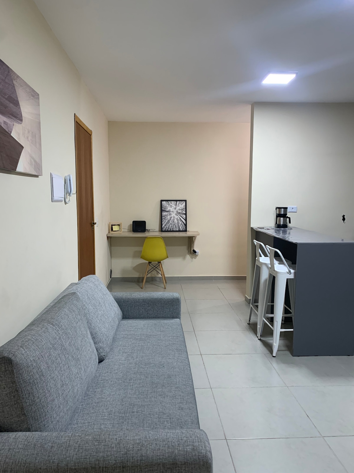 Studio moderno e aconchegante, perfeito para sua estadia! Conta com cama de casal, sofá-cama confortável e um espaço exclusivo para trabalho. A cozinha é completa, equipada com forno, cooktop, geladeira, micro-ondas e utensílios. Desfrute de uma vista incrível e do conforto do ar-condicionado. O condomínio oferece segurança e estrutura para uma estadia tranquila. Localização excelente, com fácil acesso a comércios e transporte. Ideal para viagens a trabalho ou lazer!