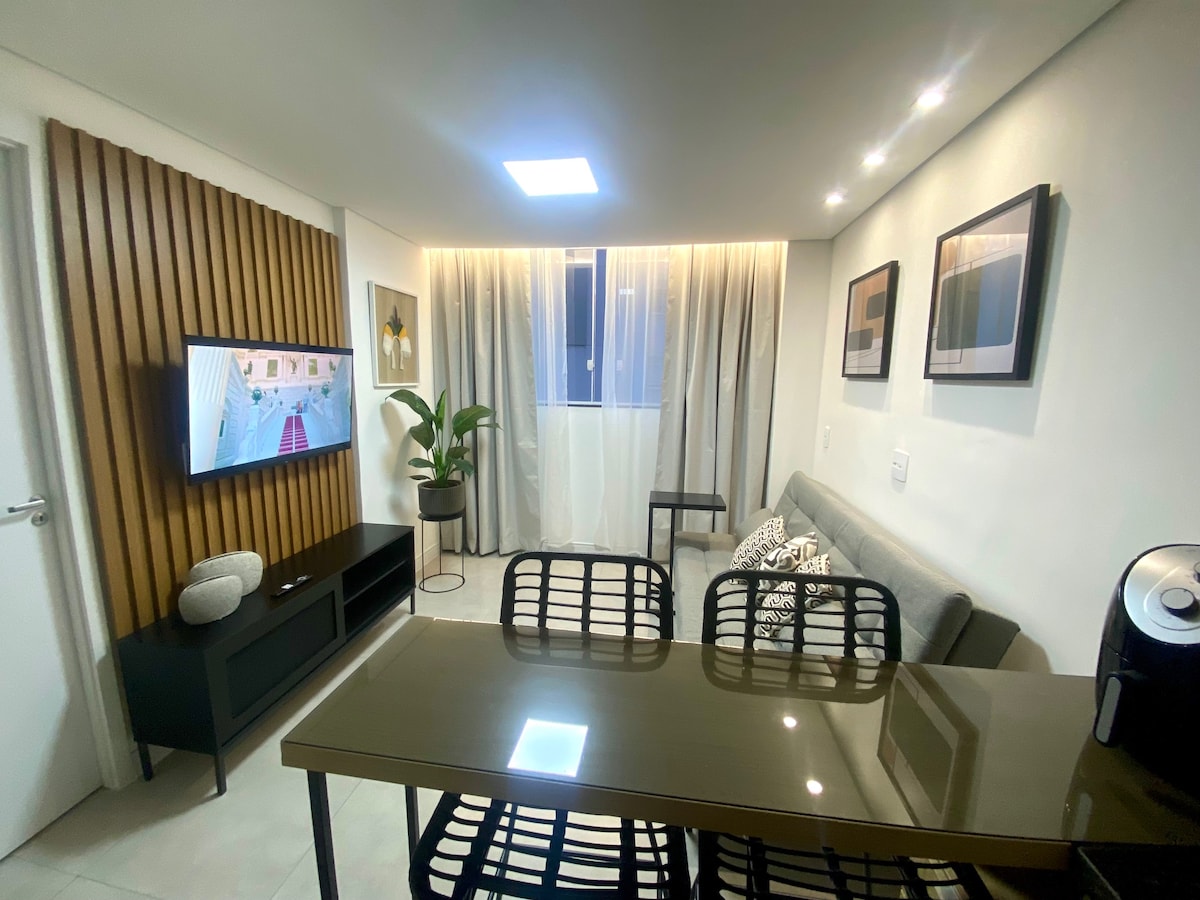 Studio moderno em condomínio de alto padrão com tudo ao seu alcance! hospede-se em um studio completo, dentro de um condomínio sofisticado que conta com um mini shopping cheio de conveniências. Aqui, você encontra de tudo pertinho: farmácia, cafés, restaurante e até mercado 24h ao lado do prédio! Ideal para quem busca conforto, praticidade e segurança, seja a trabalho ou lazer.