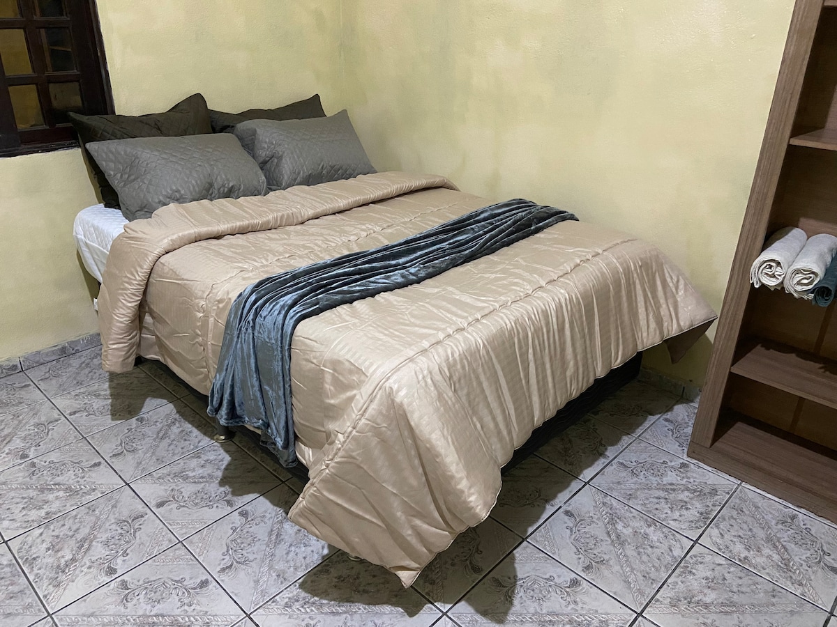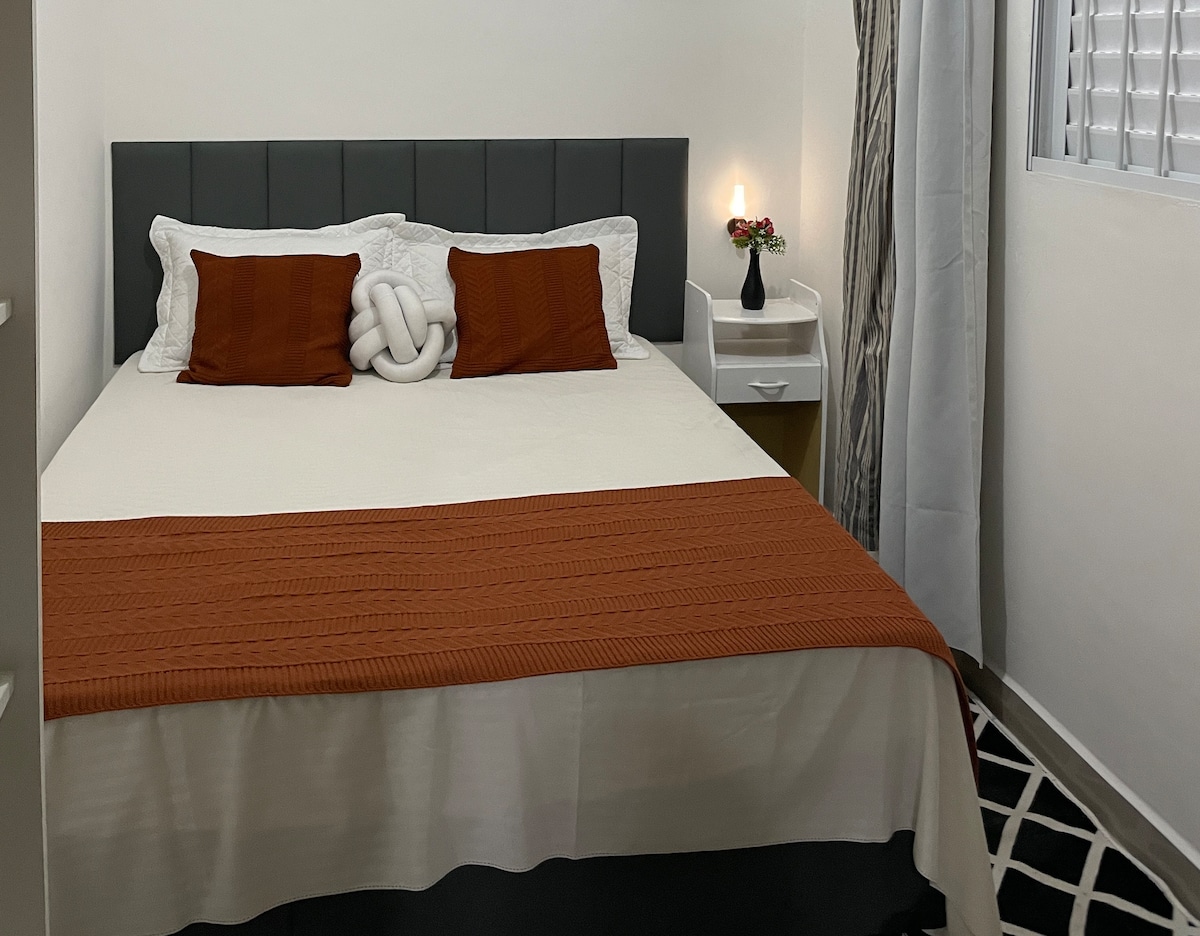 Espaço independente quarto, banheiro e cozinha americana. Para você estudante ou Viajante a trabalho. Local tranquilo e aconchegante. Ambiente familiar Venha conhecer nosso espaço.